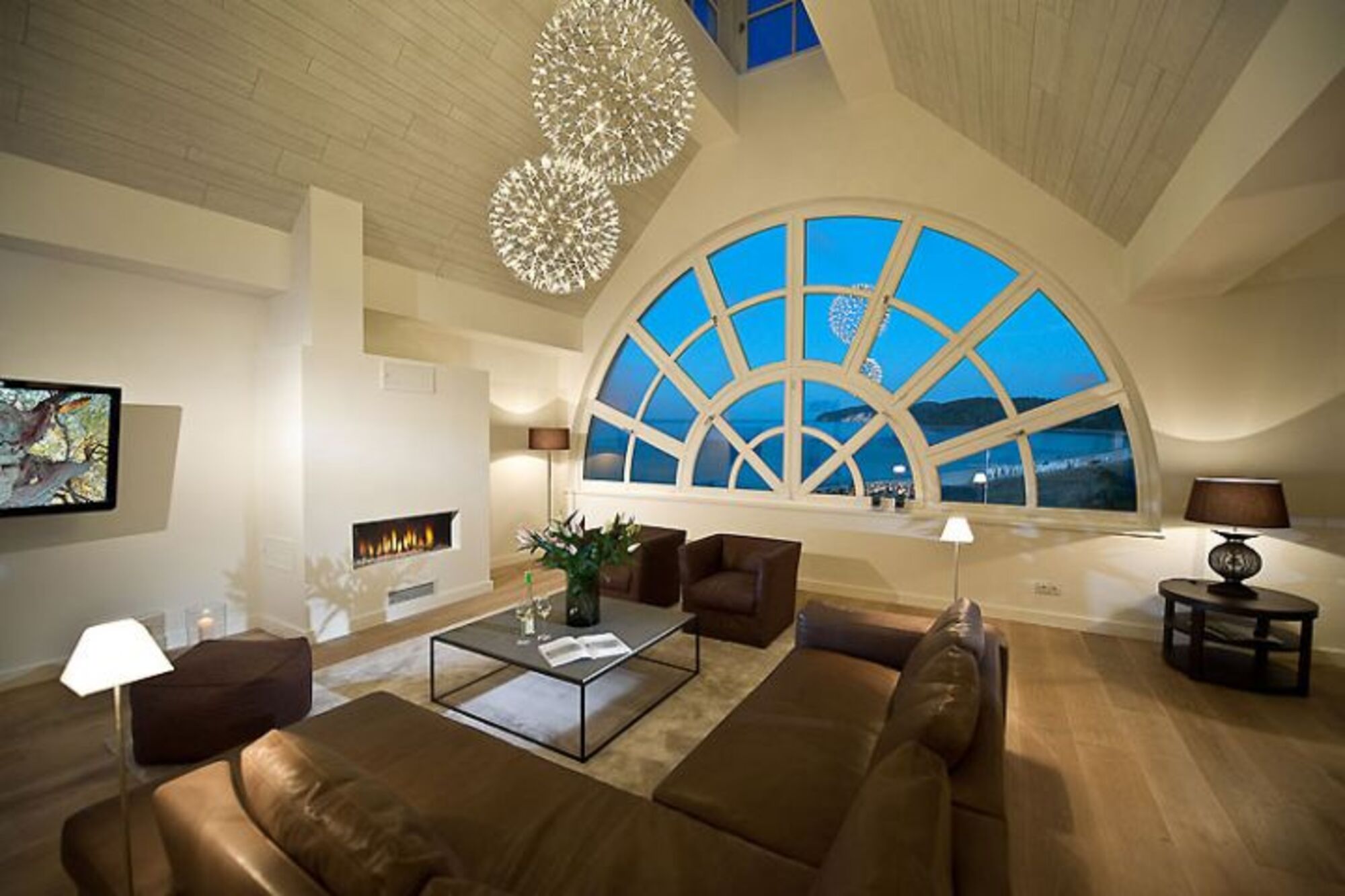 TV, TV-Flachbildschirm, DVD-Player, Kaminofen, 3er-Sofa, 2er-Sofa