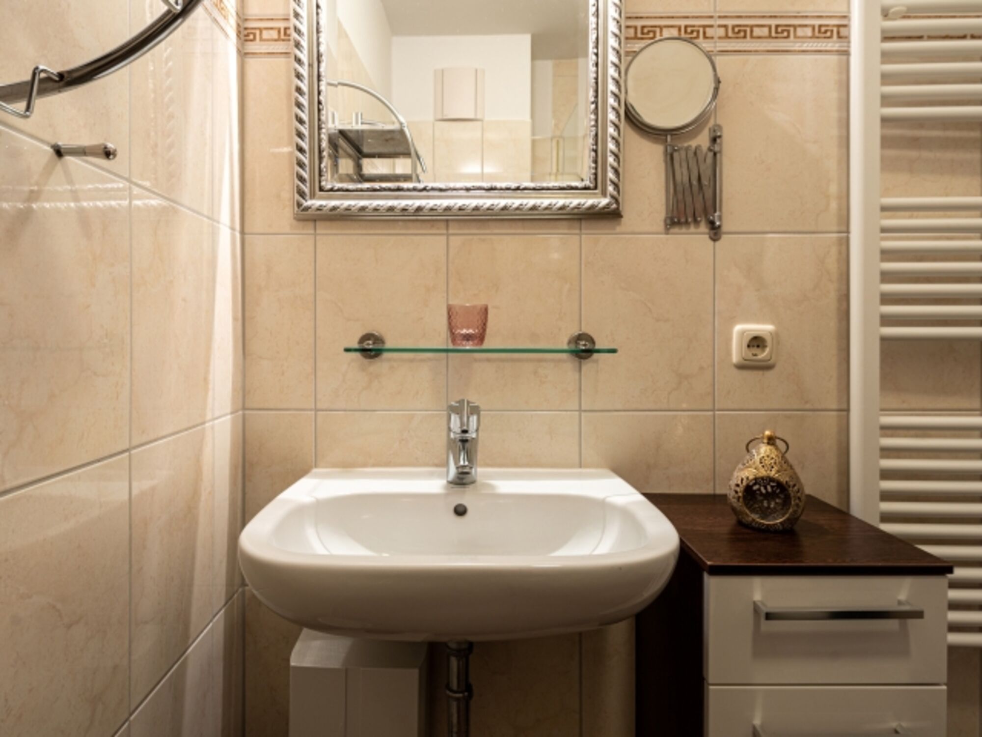 Die moderne Wohnküche ist bestens ausgestattet, damit Sie sich bequem selbst „bekochen“ können. So stehen Ihnen hier u.a. ein Ceranherd mit Backofen und Dunstabzugshaube, ein Kühlschrank mit Gefrierfach, eine Spülmaschine, eine Mikrowelle, eine Filterkaffeemaschine, eine Kapselkaffeemaschine, ein Toaster sowie ein Wasserkocher und diverses Kleininventar zur Verfügung. Bis zum nächsten Einkaufsmarkt mit Bäcker sind es übrigens nur knapp 400 Meter.