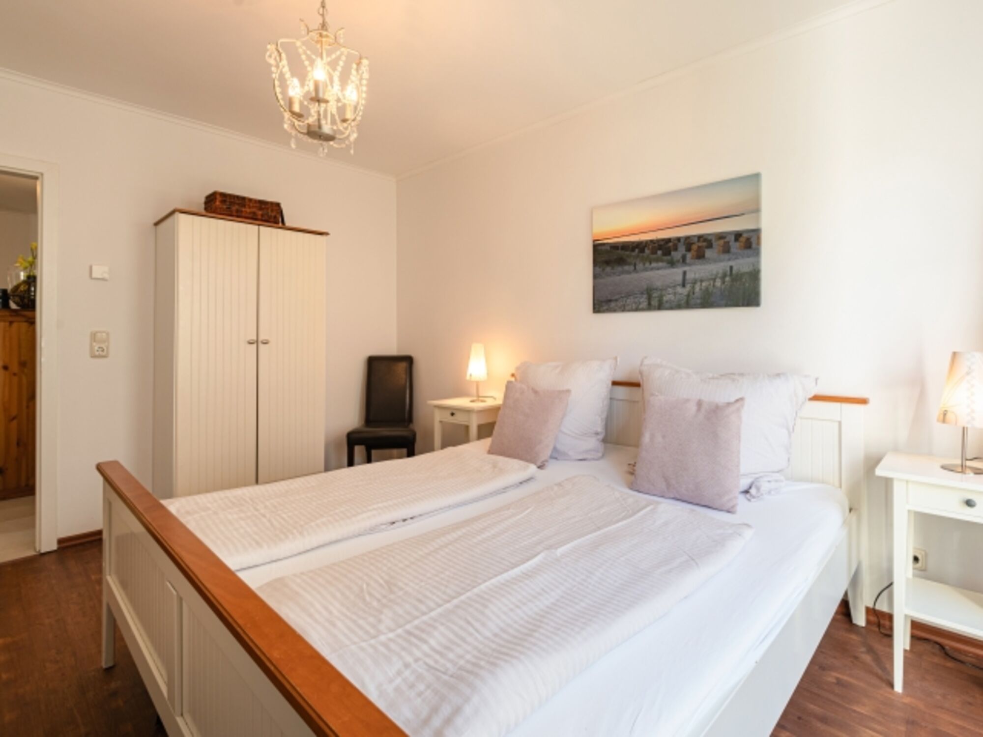 Für den erholsamen Schlaf nach einem erlebnisreichen Urlaubstag gibt es zwei separate Schlafzimmer mit großen Fensterfronten und entsprechender Verdunklungsmöglichkeit. Das erste Schlafzimmer ist mit einem Doppelbett (180x200cm) und einem Kleiderschrank ausgestattet, das zweite Schlafzimmer hat ebenfalls ein Doppelbett (180x200cm), einen Kleiderschrank und einen zusätzlichen Fernseher. Aufbettungen zur fünften und sechsten Person sind auf der ausklappbaren Couch im Wohnzimmer (ca. 140cm breit) möglich. Doppelbett 1,80 x 2,00m