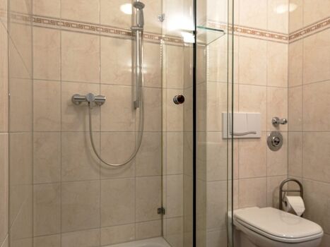 Komplettiert wird Ihr Urlaubsdomizil durch das Badezimmer mit Dusche/WC, Waschbecken, Kosmetikspiegel und Fön.