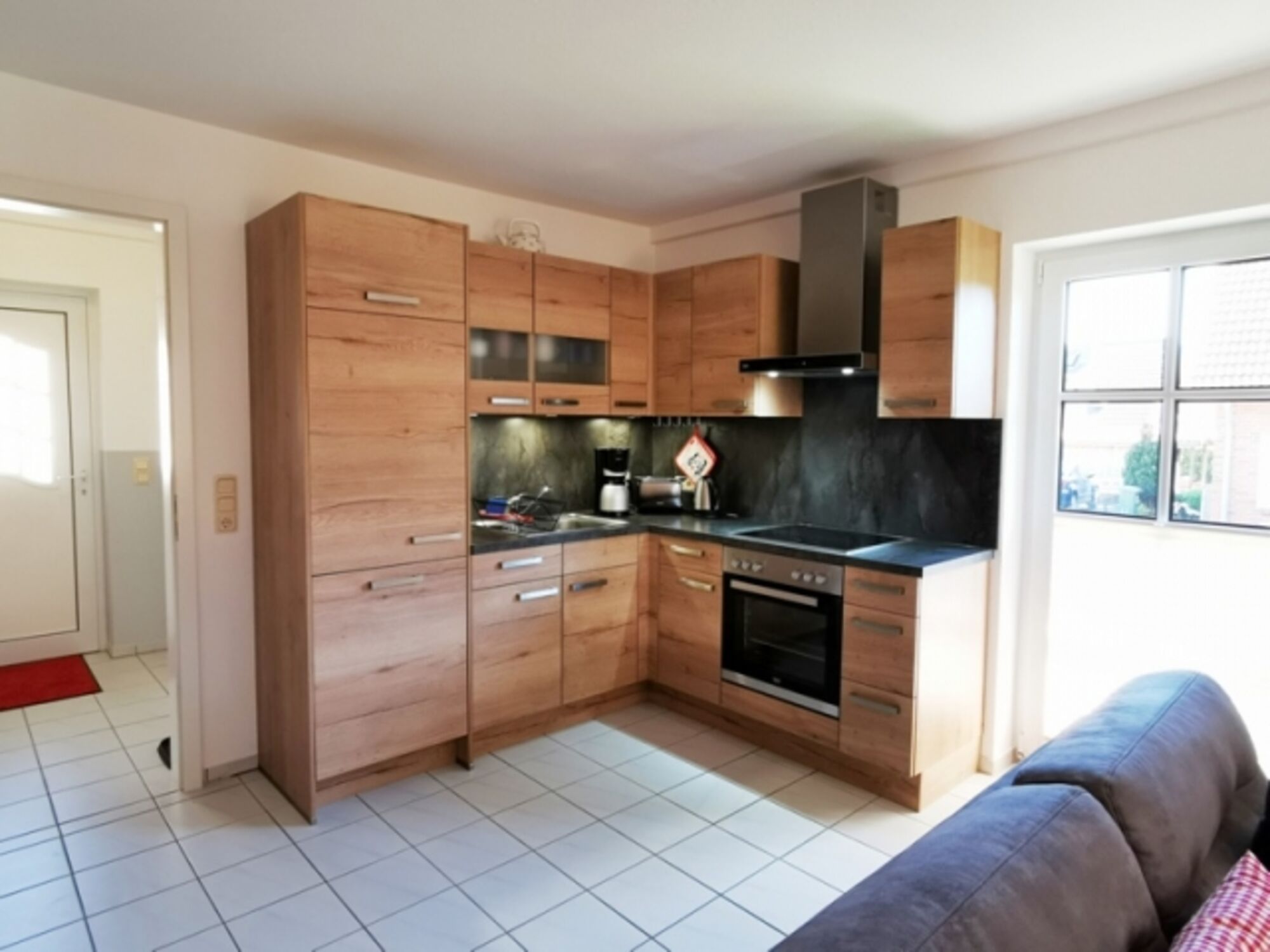 Cerankochfeld, Dunstabzugshaube, Kühlschrank mit Gefrierfach, Korkenzieher / Flaschenöffner, Essplatz in der Küche