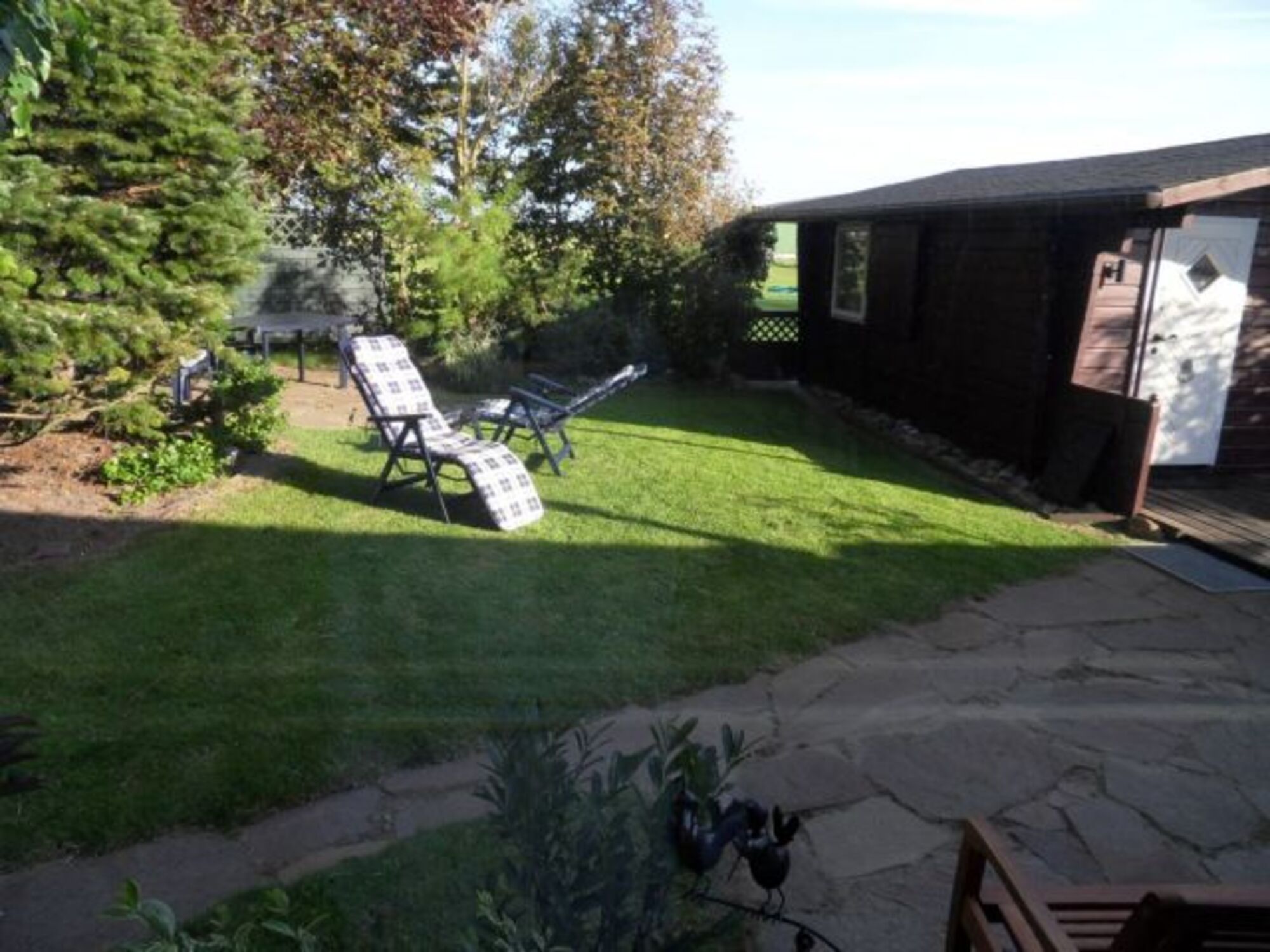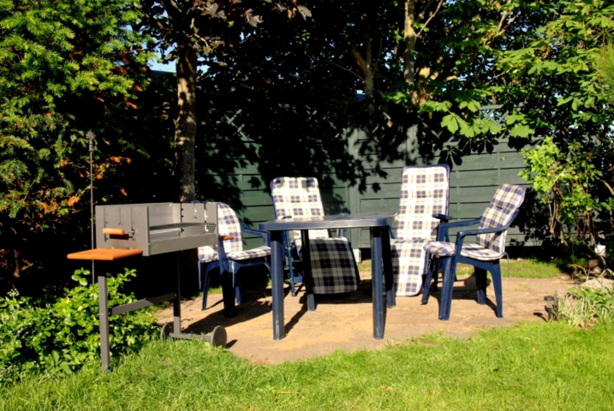 Der Garten mit Gartenmöbeln, Terrasse und Grillplatz lädt zum gemütlichen Relaxen oder Spielen ein.