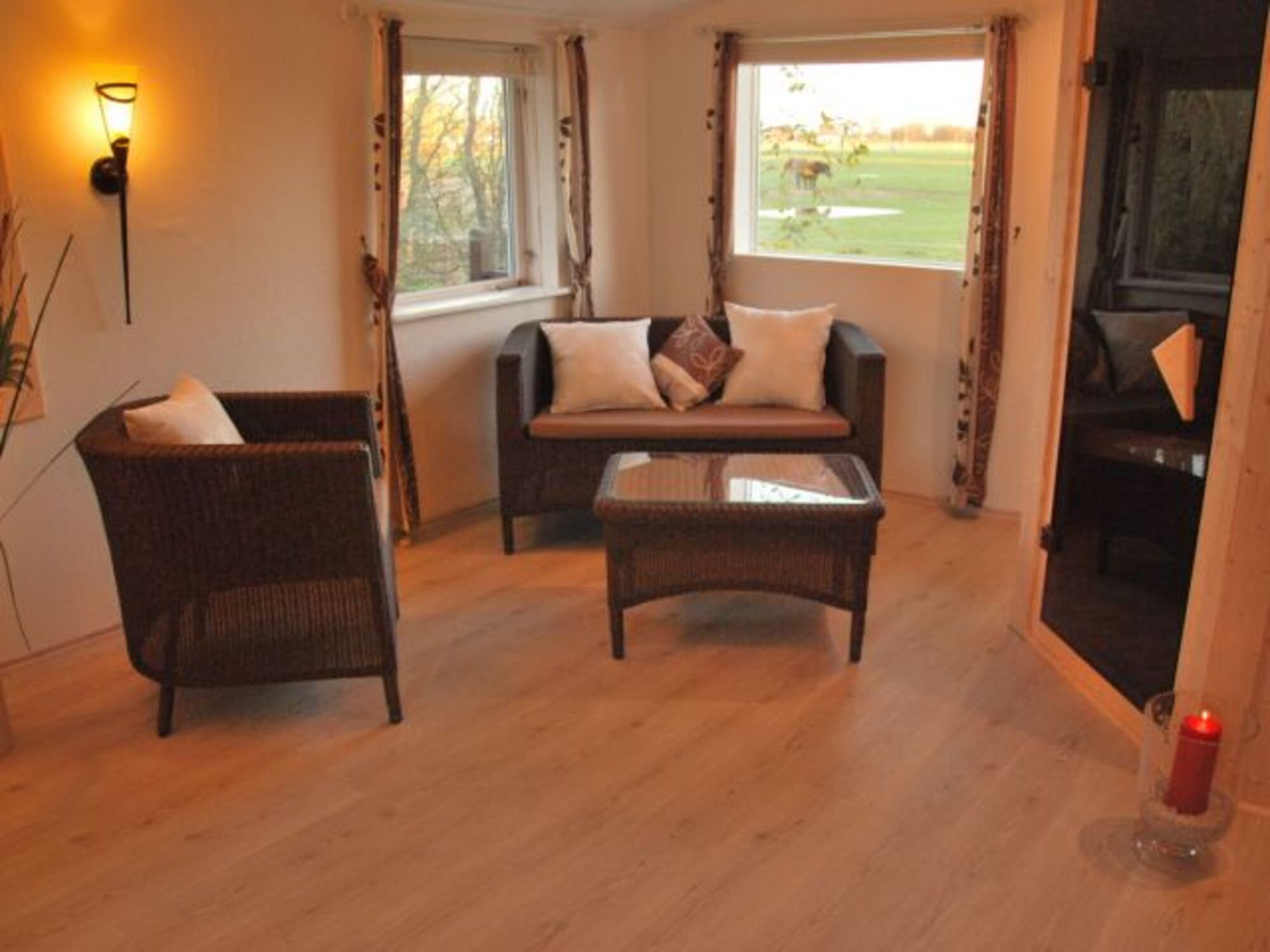 Ein Highlight im Haus ist das zweite Wohn- und Fernsehzimmer im OG. Die großen Panoramafenster ermöglichen einen phantastischen weiten Blick über die Landschaft bis nach Büsum. Bei einem der Fenster lässt sich sogar ein kleiner Balkon ausklappen.