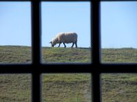 Die Rückseite des Grundstücks grenzt an eine riesige unbebaute Weidefläche an. Von hier hat man einen weiten Blick bis nach Büsum.