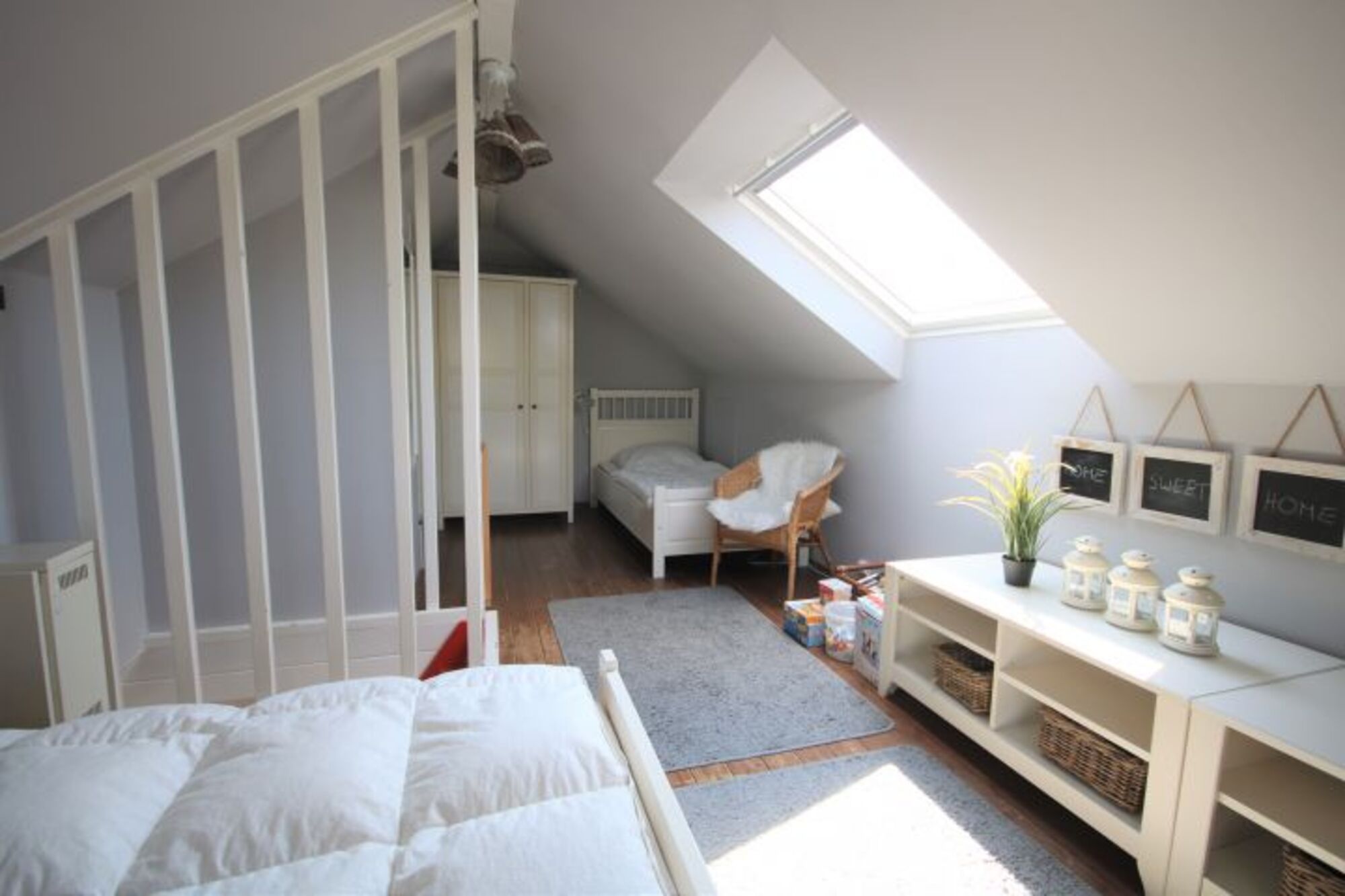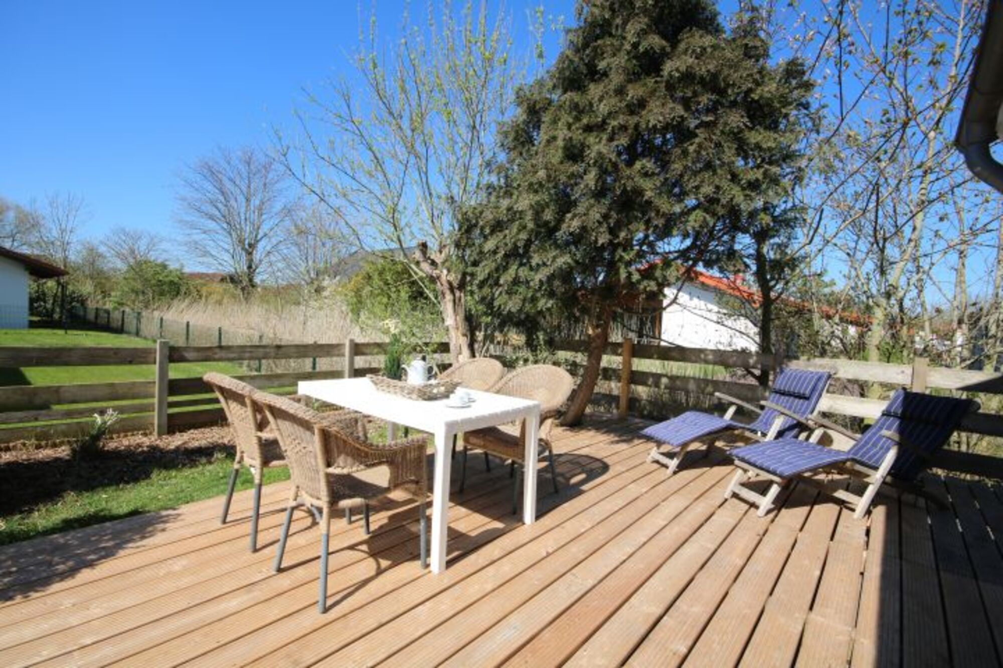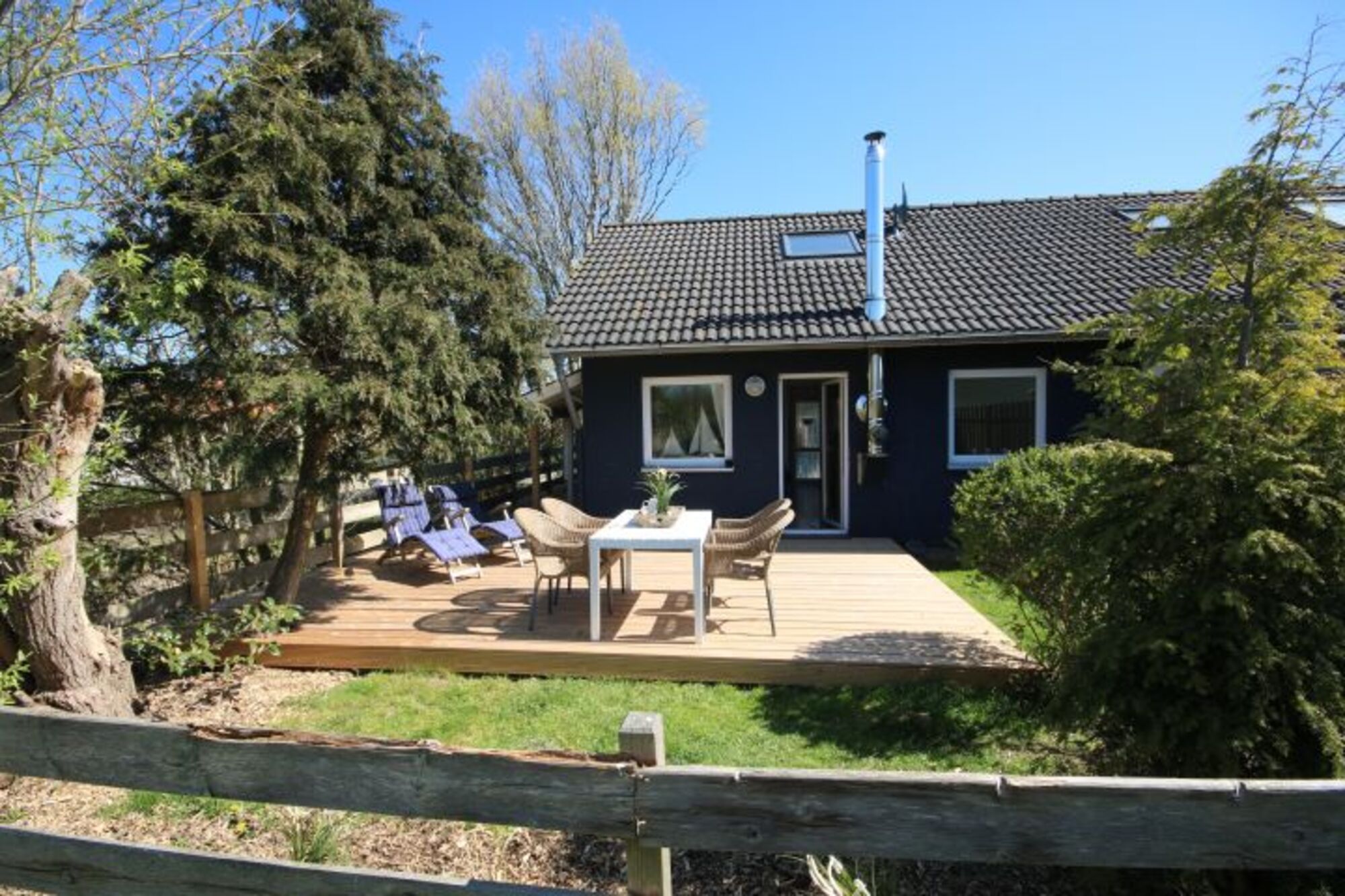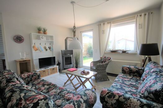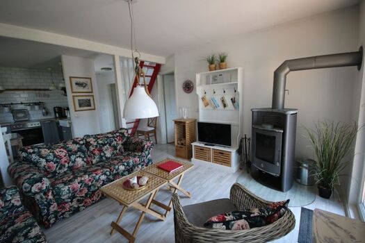 Das zweite offene Schlafzimmer ist durch eine Raumspartreppe erreichbar und mit zweitem TV augestattet. Der kleine Garten verfügt über eine große Holzterrasse und ist komplett eingezäunt.Das Haus ist mit Geschirrspüler, Waschmaschine, Holz-Babybett und Hochstuhl ausgestattet. Der Kaminofen sorgt für kuschelige Stunden. Wir freuen uns auf Sie!
