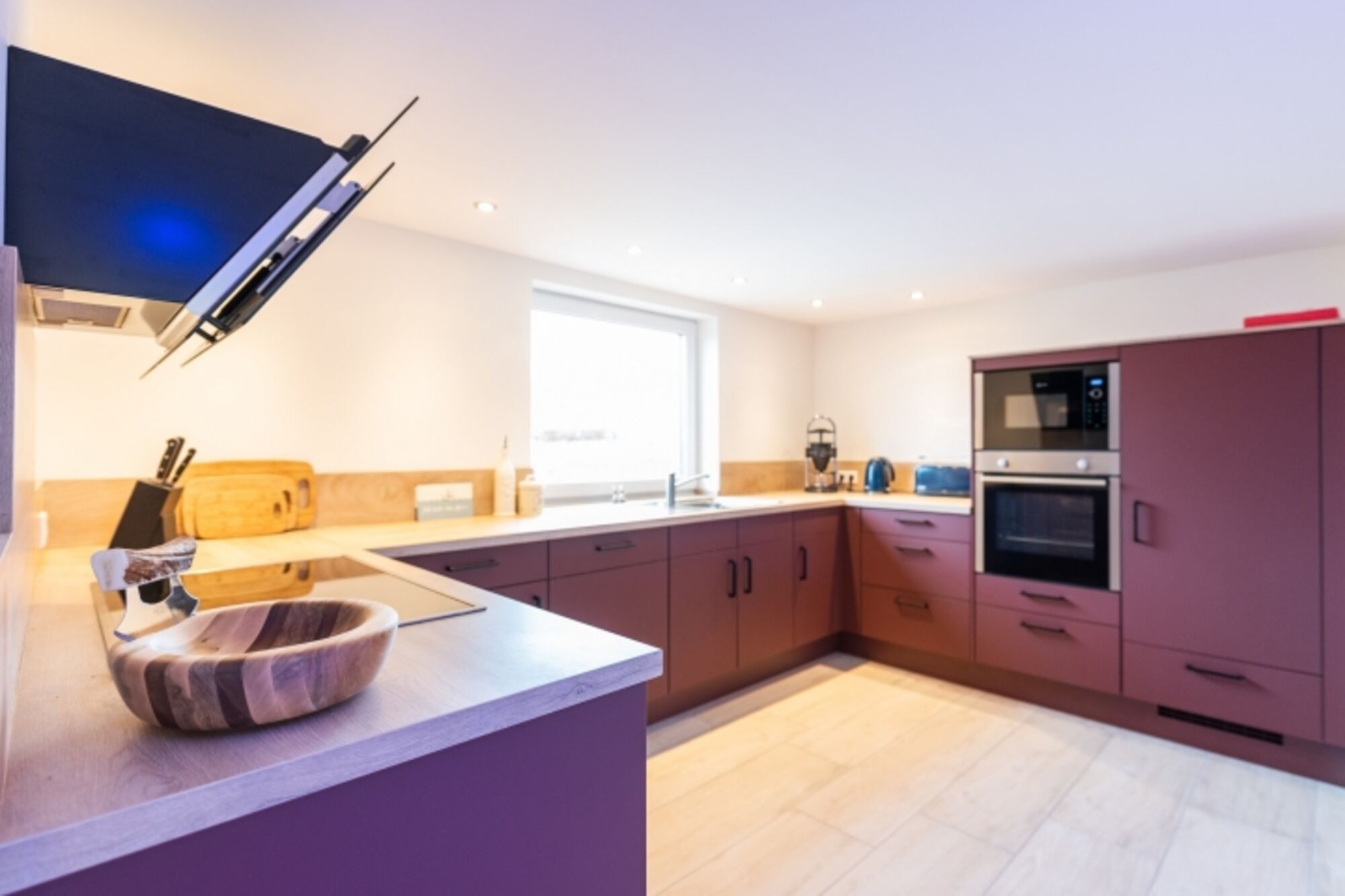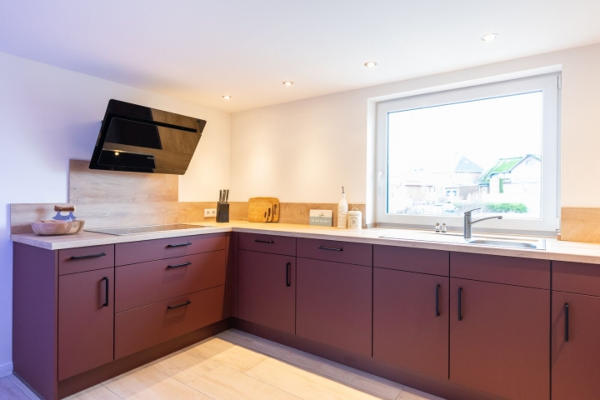 Cerankochfeld, Dunstabzugshaube, Gefrierschrank, Eierkocher, Mixer, Korkenzieher / Flaschenöffner, Gewürze (Salz, Pfeffer, Zucker), Geschirrhandtücher