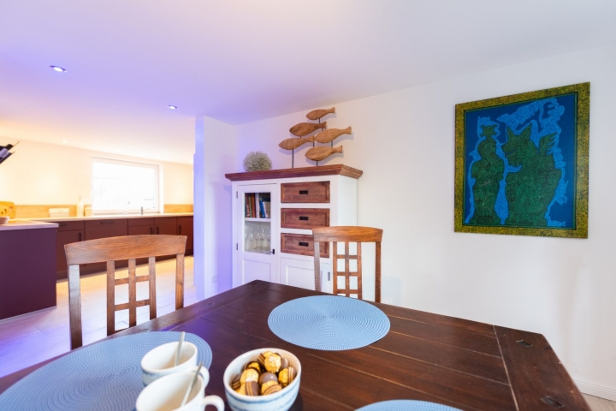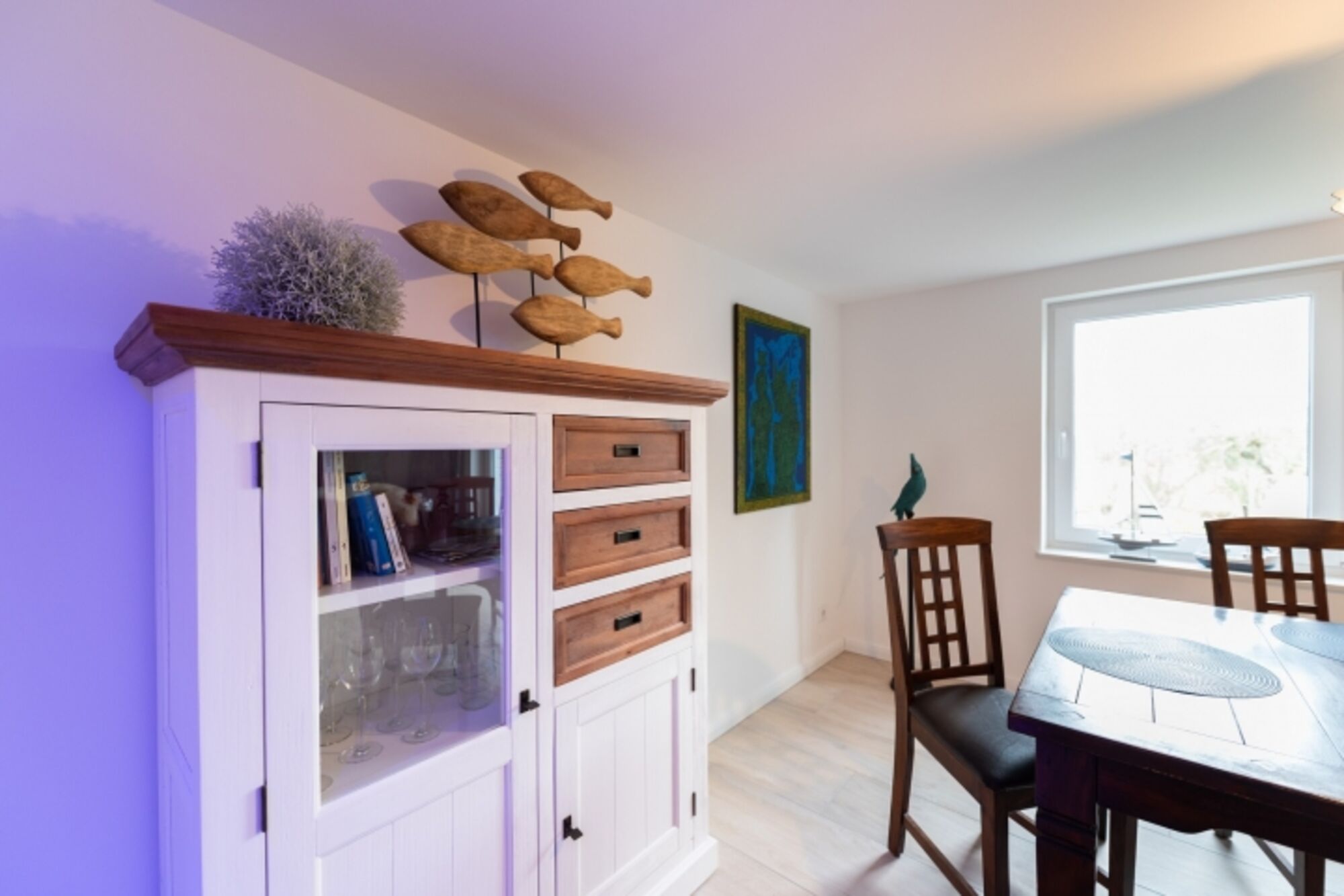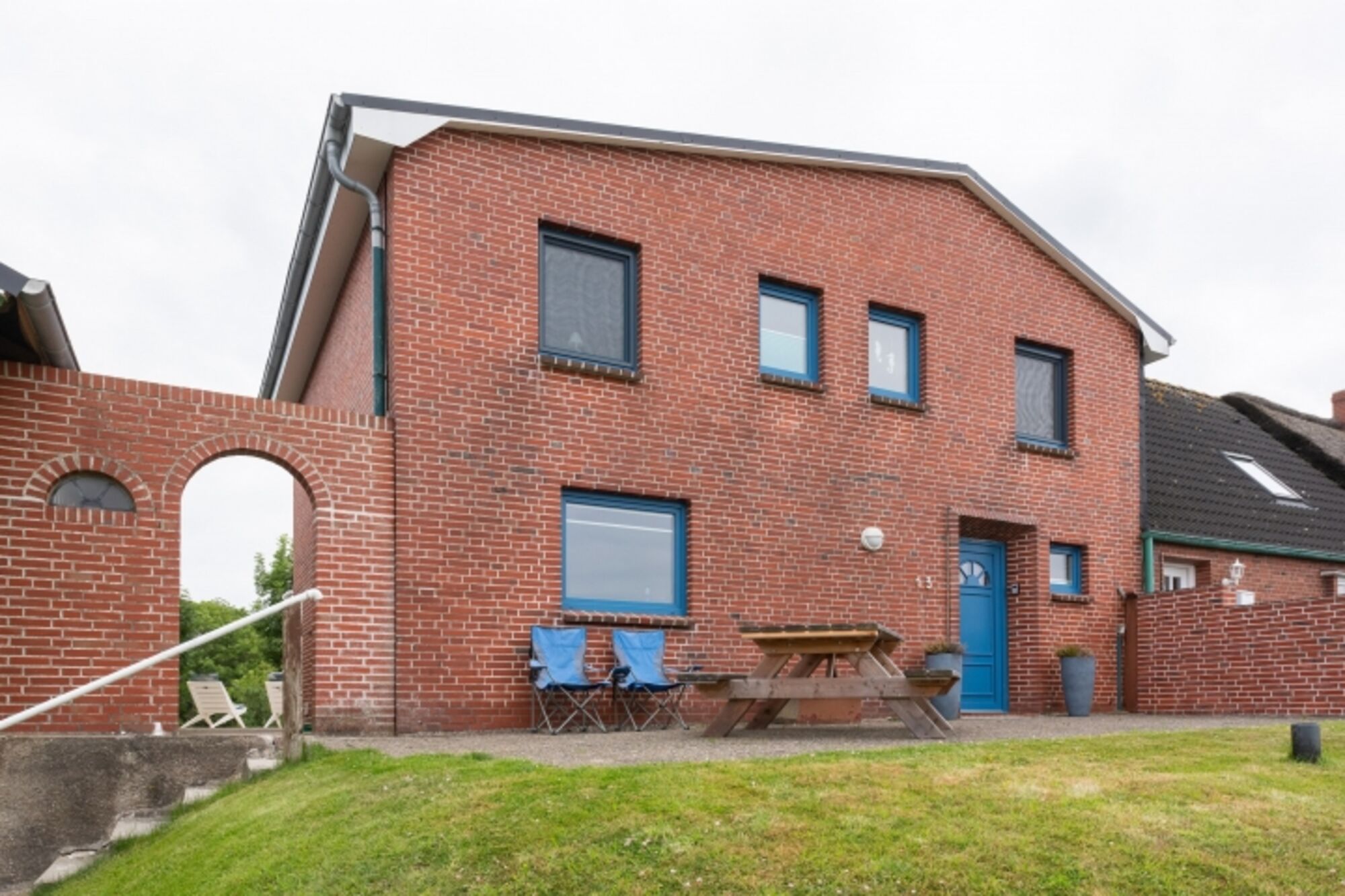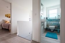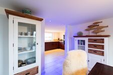 Dieses ganz besondere Haus lässt Ihre Urlaubsträume wahr werden! Von außen eher unscheinbar anzusehen, doch im Inneren kaum zu überbieten. Dieses wundervolle Ferienhaus wurde 2020 und 2021 komplett renoviert und neu eingerichtet. Die Erstvermietung startet zum 01.07.2021. Alle Räume sind modern, hochwertig und hell eingerichtet. Vom Essbereich im offenen Wohnzimmer genießen Sie einen traumhaften Blick in den Garten und auf die umliegenden Wiesen. Die Küche lässt einen Blick in Richtung Meer zu, nur unterbrochen durch den Seedeich, der sich in 100m Entfernung zu Ihrem Ferienhaus befindet. Hier riechen und "schmecken" Sie das Meer und die jodhaltige Nordseeluft! Sämtliche Schlafzimmer des Hauses sowie ein zusätzliches Gäste-WC befinden sich im Obergschoß. Dieses ist über eine geschlossene, hundesichere Steintreppe zu erreichen.
