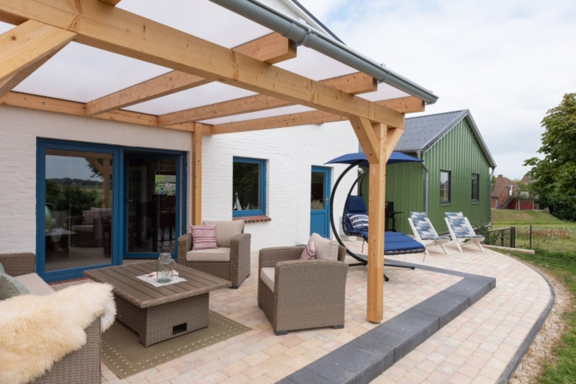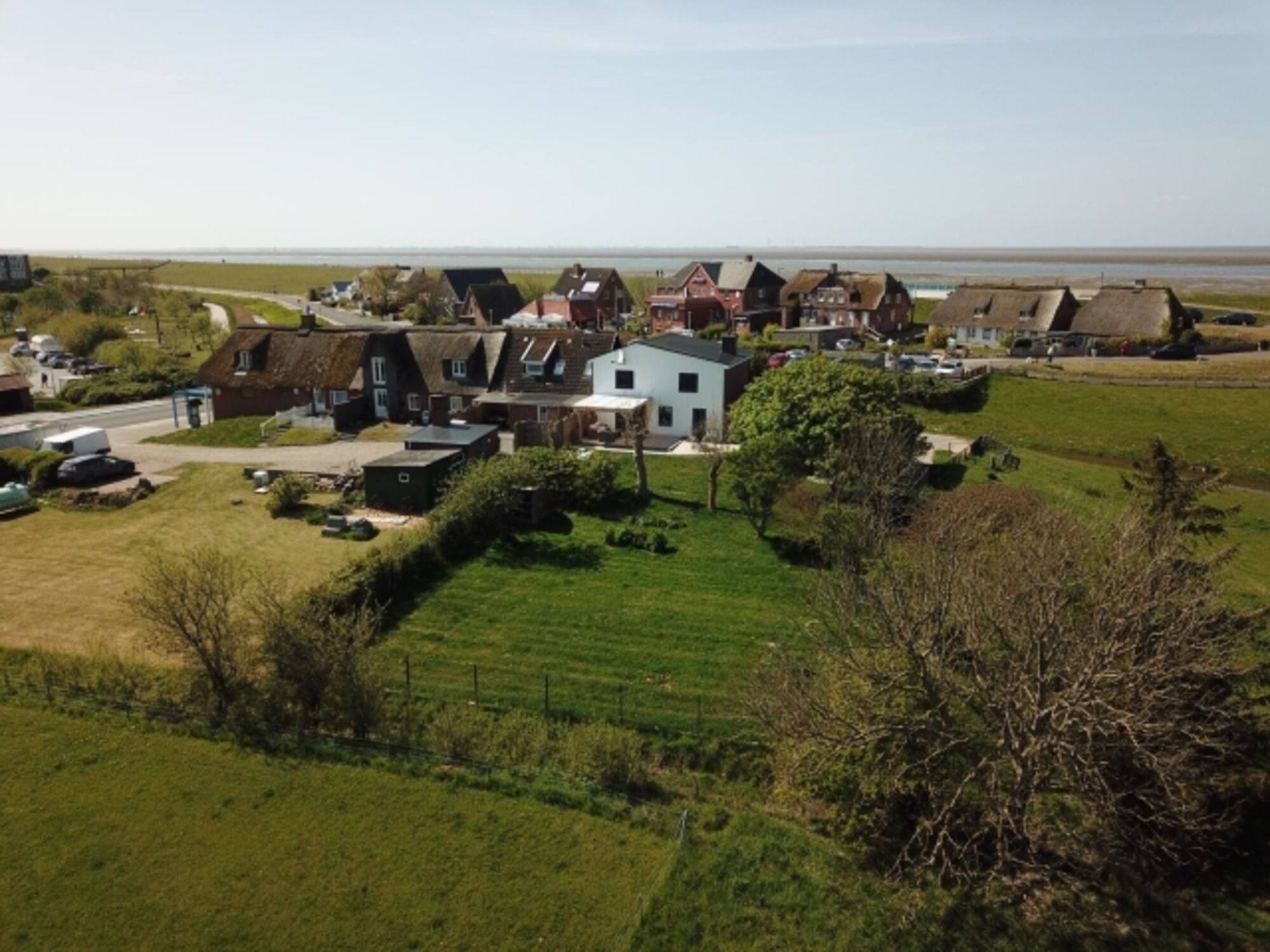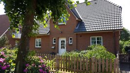Ein zusätzliches Highlight des Hauses befindet sich im Nebengebäude: der Kaminofen (Pellet), ein Wellnessbereich, eine Tischtennisplatte und ein Tischkicker sowie ein zusätzlicher Fernseher untergebracht. Somit ist dieses Haus ebenfalls eine perfekte Winter- und/oder Schlecht-Wetter-Unterkunft. Der Garten führt nach hinten raus und beinhaltet einen kleinen Sielgraben mit Holzterrassensitzplatz. Der gesamte Garten ist auf 1.40m Höhe eingezäunt und bietet einen traumhaften Blick auf die umliegenden Wiesen. In nur 120m Entfernung befindet sich die Nordsee.