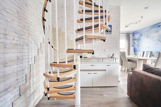 Das Feriendomizil verfügt auf 2 Ebenen über 1 komb. Wohn-/Esszimmer, 1 Küche, 6 Schlafräume, 2 Bäder und einen ca. 500 m² großen, komplett eingezäunten Garten.