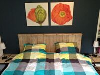 1.Etage: Schlafzimmer mit Boxspringbett für zwei Personen (Länge 200 cm), Schlafzimmer mit Einzelbett und der Möglichkeit ein Babybett aufzustellen. Eine weitere Toilette mit Waschbecken befindet sich hier ebenfalls.