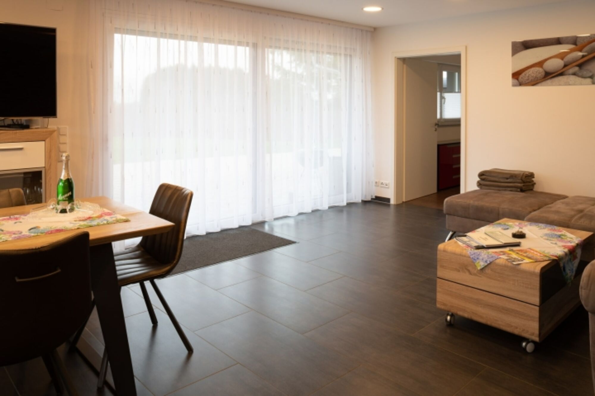 Unsere Ferienwohnung wurde 2015 renoviert und barrierefrei gestaltet. In allen Zimmern befindet sich Fußbodenheizung.