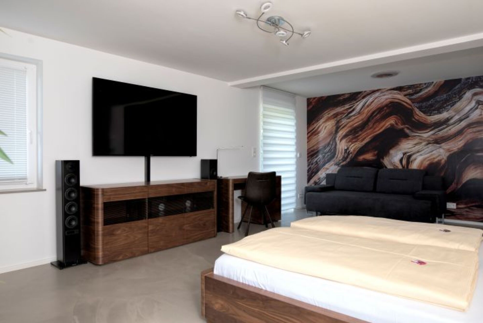 Nubert-Boxen in jedem Zimmer Doppelbett 1,80 x 2,00m, Kommode, Spiegel, Leselampe am Bett