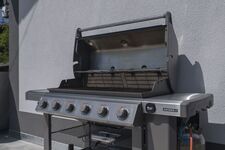 Die Terrasse mit großem Weber-Gasgrill und großem Tisch mit ausreichend Stühlen lädt zu gemütlichem Grillen ein.
