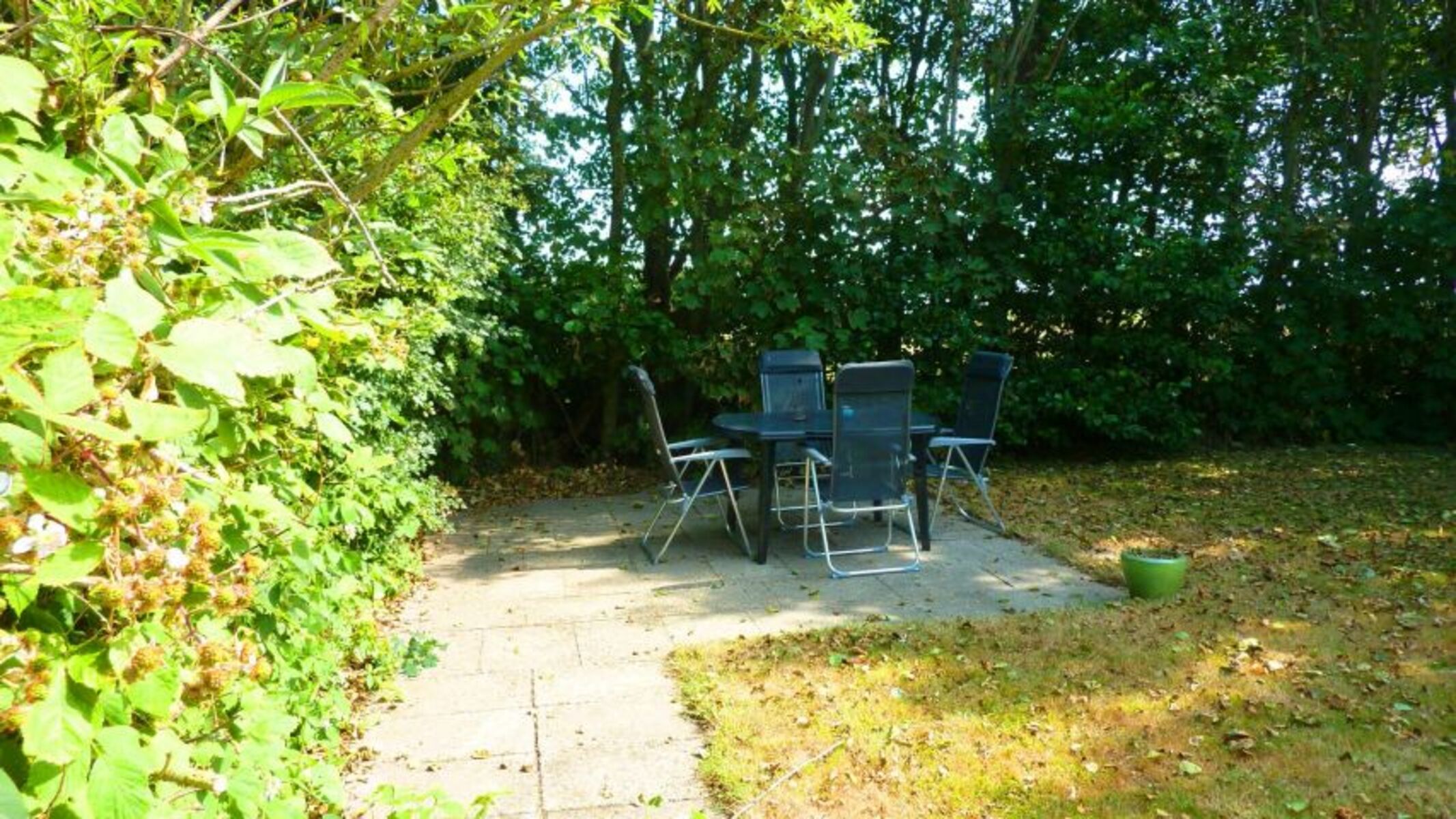 Liegewiese, Gartenmöbel, Gasgrill, Bänke, Hof, Windschutz