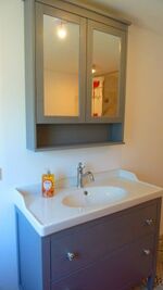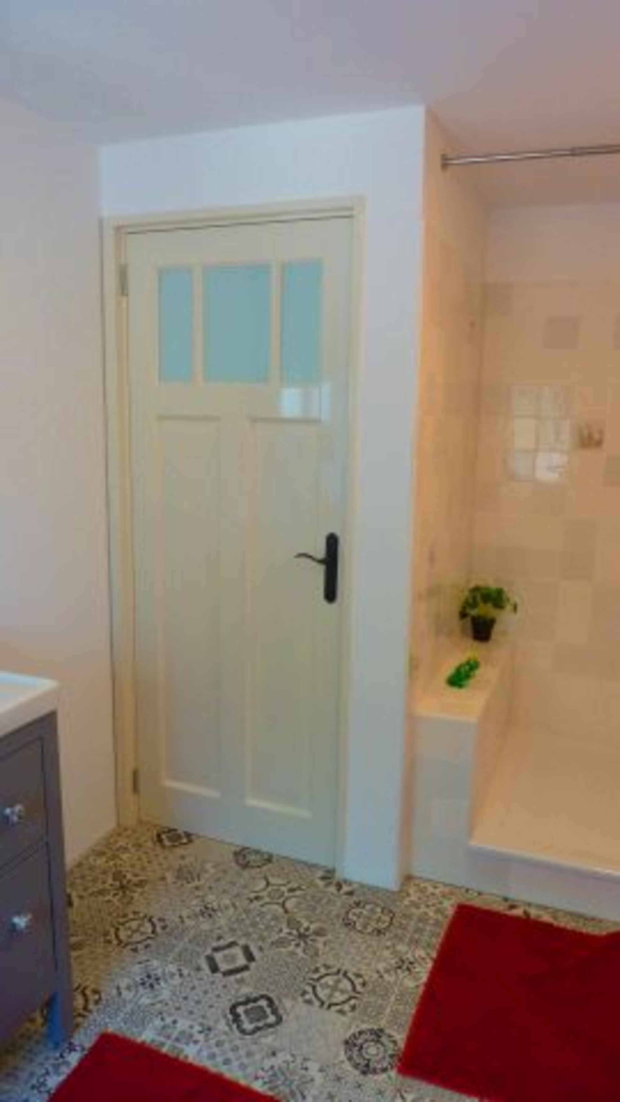 Neu renoviertes Bad mit begehbarer Dusche, Toilette und Waschmaschine