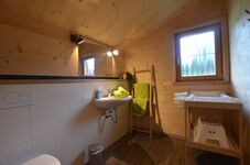 Das Chalet verfügt über drei gemütliche Schlafzimmer, die ideal für erholsame Nächte sind. Die zwei modernen Badezimmer sorgen dafür, dass morgens alles reibungslos abläuft, selbst wenn alle zur gleichen Zeit aufstehen. Der offene Wohnbereich mit einem einladenden Schwedenofen schafft eine warme Atmosphäre, perfekt zum Entspannen nach einem Tag voller Abenteuer in der Natur.