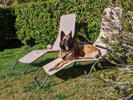 "Fiffi"ge Kriterien: Der Garten ist ringsum mit einer sehr dichten ca. 120 m hohen Hecke + Zaun umgeben. Hunde sind herzlich willkommen. Platz für Hundehänger auf dem Grundstück.
