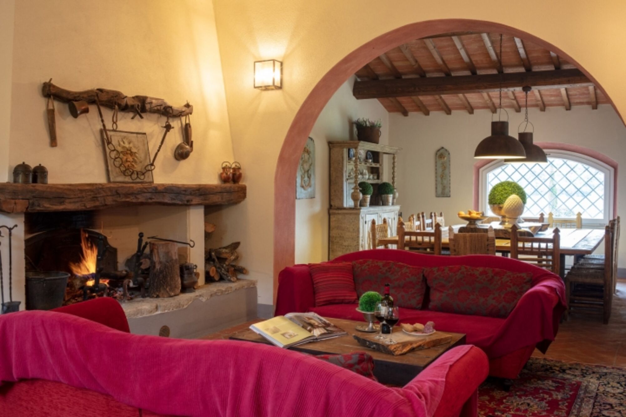 großes Wohn-Zimmer mit Sofas, Sesseln, großem toskanischen Kamin.TV-Ecke mit Sofas. großer Esstisch.