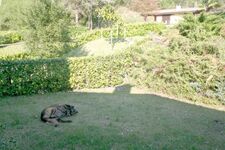 "Fiffi"ge Kriterien: Hier sind Sie mit großen und auch mehreren Hunden willkommen. Der vordere und der hintere Teil des Gartens sind eingezäunt und hinten noch von einer dichten Hecke umgeben.