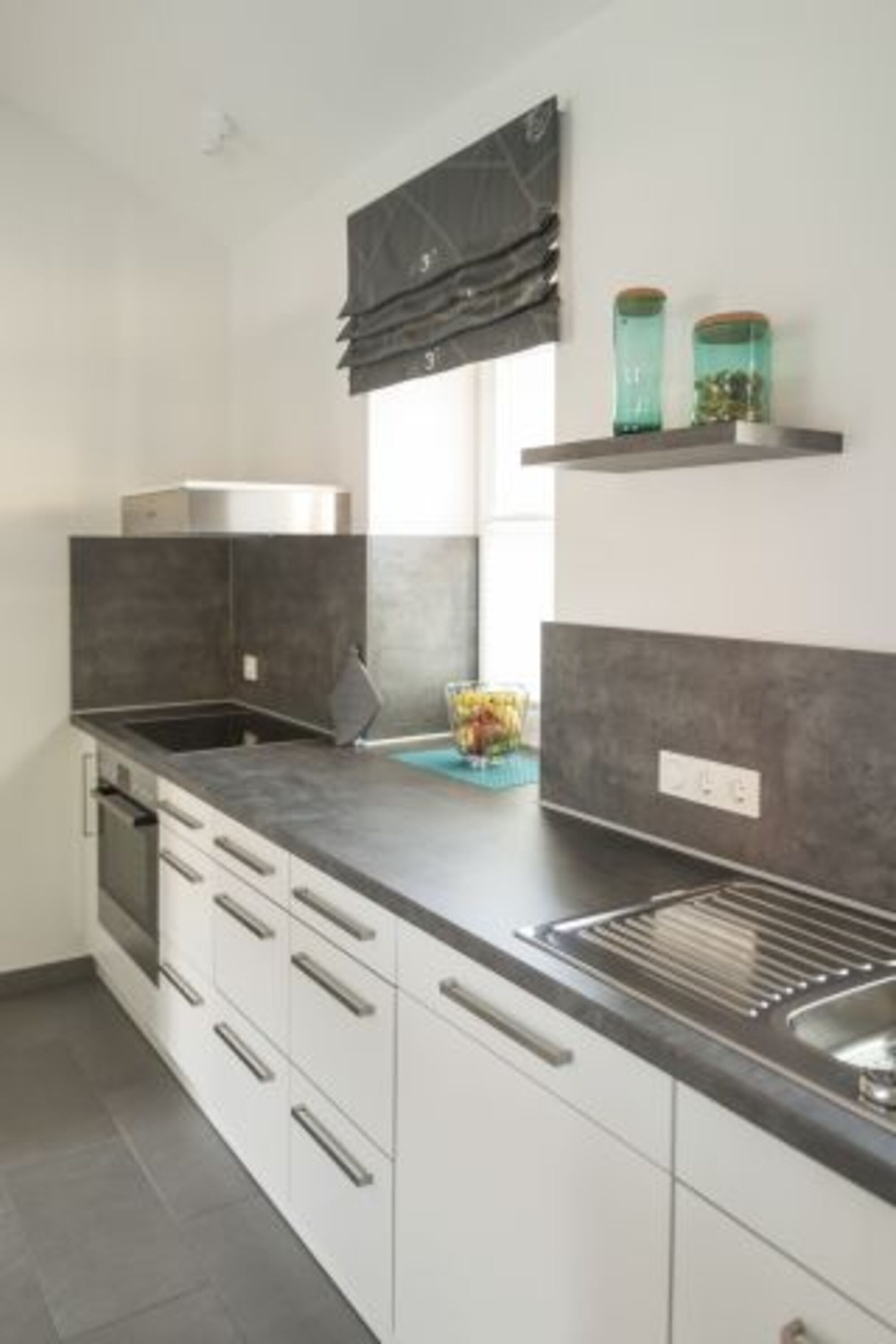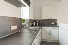 Cerankochfeld, Dunstabzugshaube, Kühlschrank mit Gefrierfach, Eierkocher, Korkenzieher / Flaschenöffner, Geschirrhandtücher