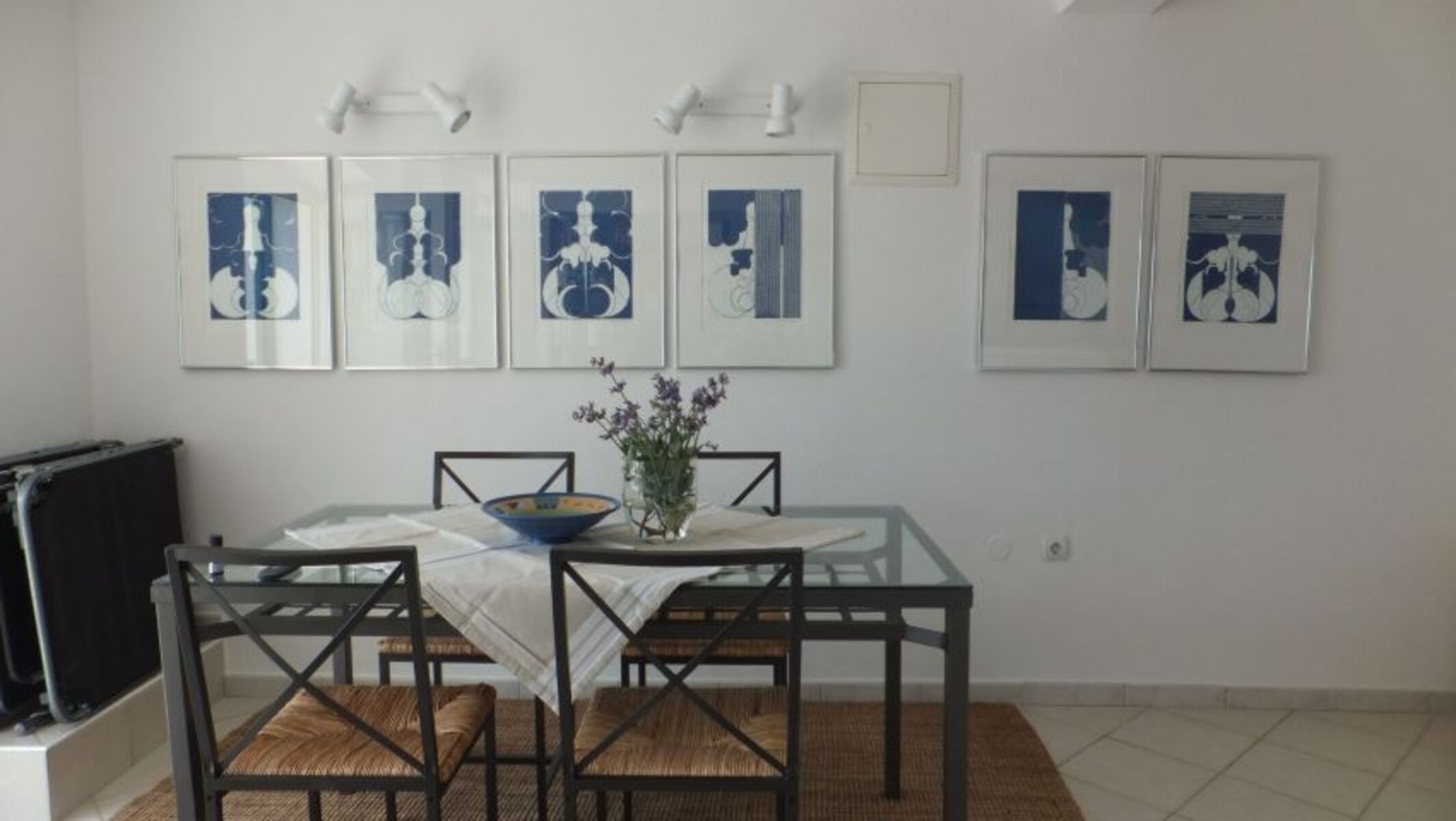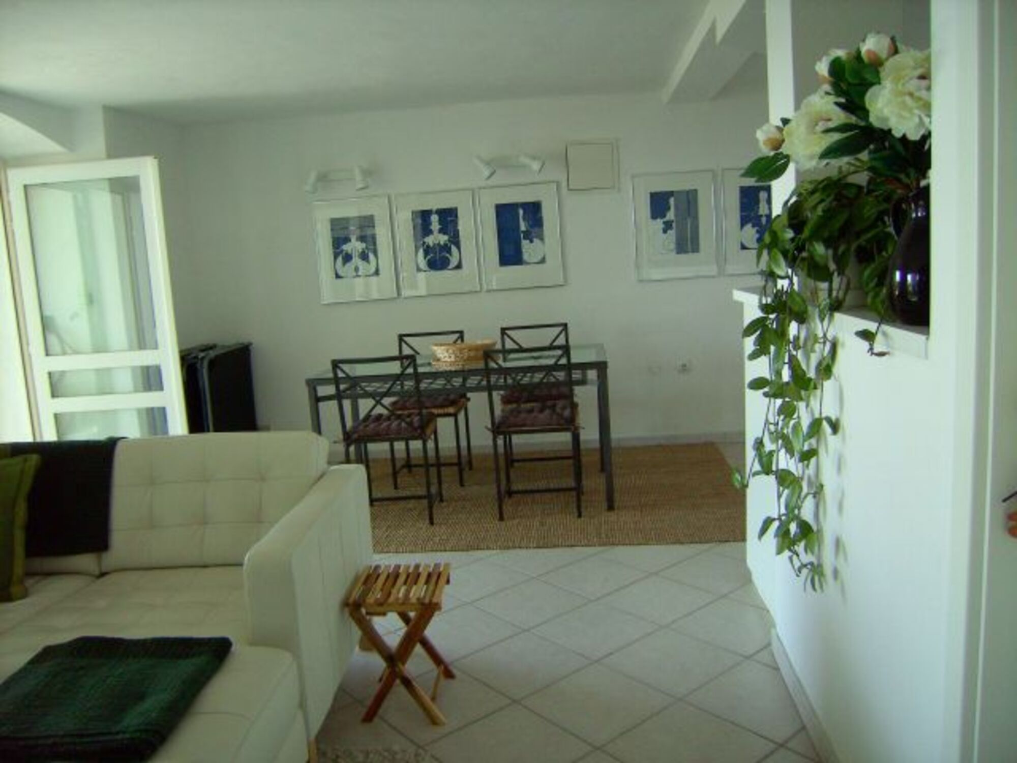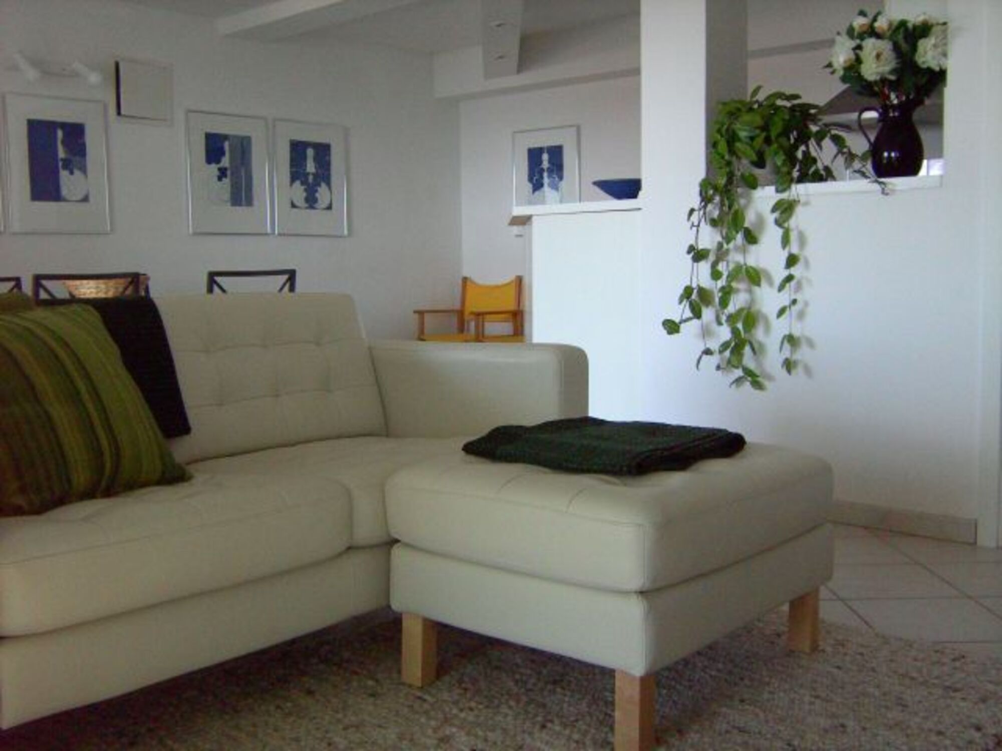 Terrasse: Essplatz für 4 Personen, Holzkohlengrill und auf der Aussichtsplattform noch mal ein Tisch für 2 Personen. Die direkte Verbindung von der Terrasse zur Grünzone ist ideal für Hundebesitzer. Der Wohnraum ist ausgestattet mit einem weißen Ledersofa, einem Essplatz für 4 Personen + Kinderstuhl, mit Klimaanlage, Satelliten TV, Stereoanlage und einer gut sortierten Urlaubsliteratur.