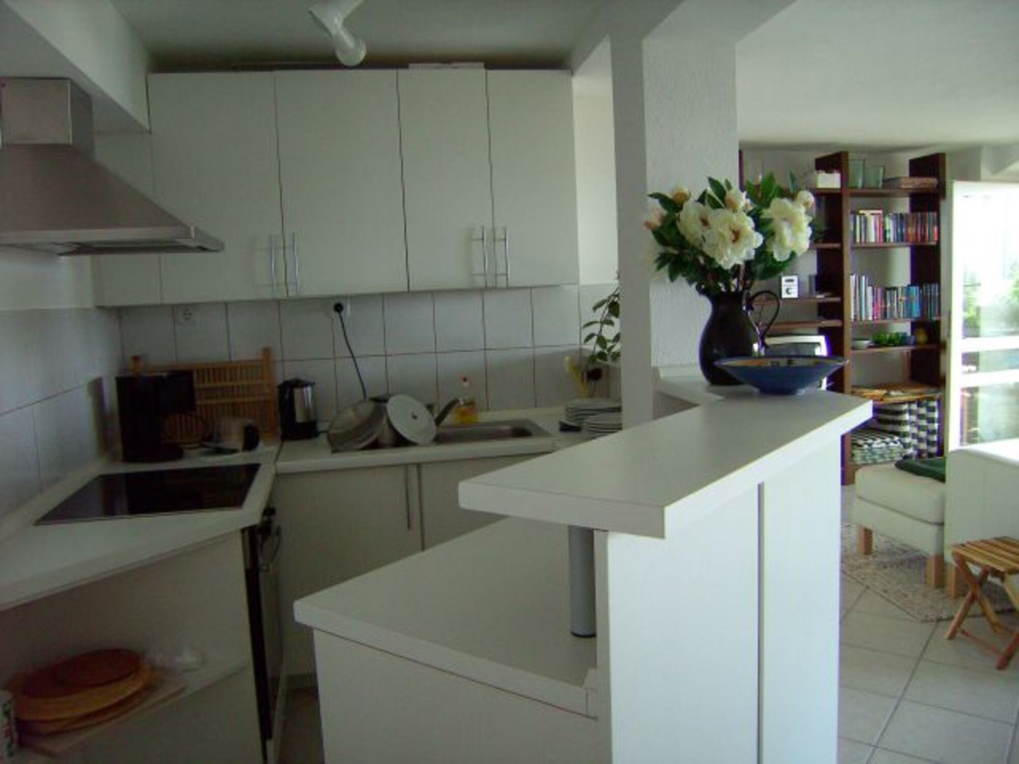 4-Platten Herd, Cerankochfeld, Dunstabzugshaube, Kaffeevollautomat, Küchenmaschine, Mixer, Korkenzieher / Flaschenöffner, Gewürze (Salz, Pfeffer, Zucker), Öl / Essig, Geschirrhandtücher, Mülltüten, TV in der Küche