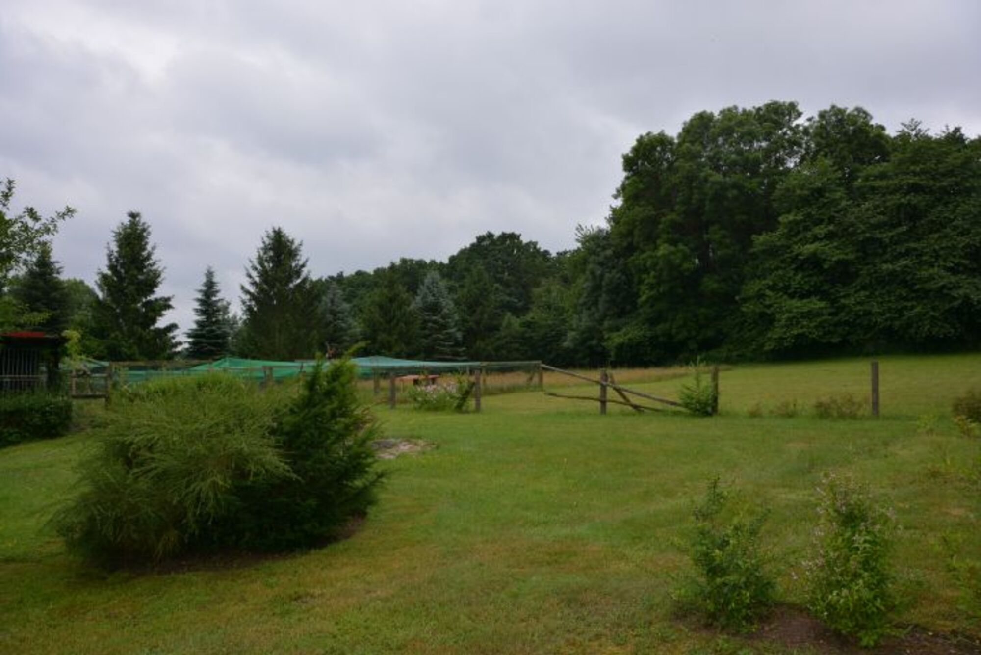 Es sind auch genügend Allgemeinflächen (13000 qm) vorhanden, um z.B. auch die Hunde miteinander spielen zu lassen oder Fährtenarbeit zu trainieren. Es gibt es auch noch einen separaten eingezäunten Übungsplatz mit verschiedenen Agility-Hindernissen, so dass Hundesportfreunde auch z.B. eine Übungslager veranstalten können. Zum Grundstück gehört auch ein kleiner Wald, in welchem z.B. Rettungshunde üben könnten. Für die zwingergewöhnten Hunde gibt es einen Zwinger 2x4 m groß, mit Hütte.