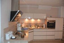 4-Platten Herd, Cerankochfeld, Dunstabzugshaube, Gefrierschrank, Korkenzieher / Flaschenöffner, Gewürze (Salz, Pfeffer, Zucker), Öl / Essig, Geschirrhandtücher, Mülltüten, Essplatz in der Küche