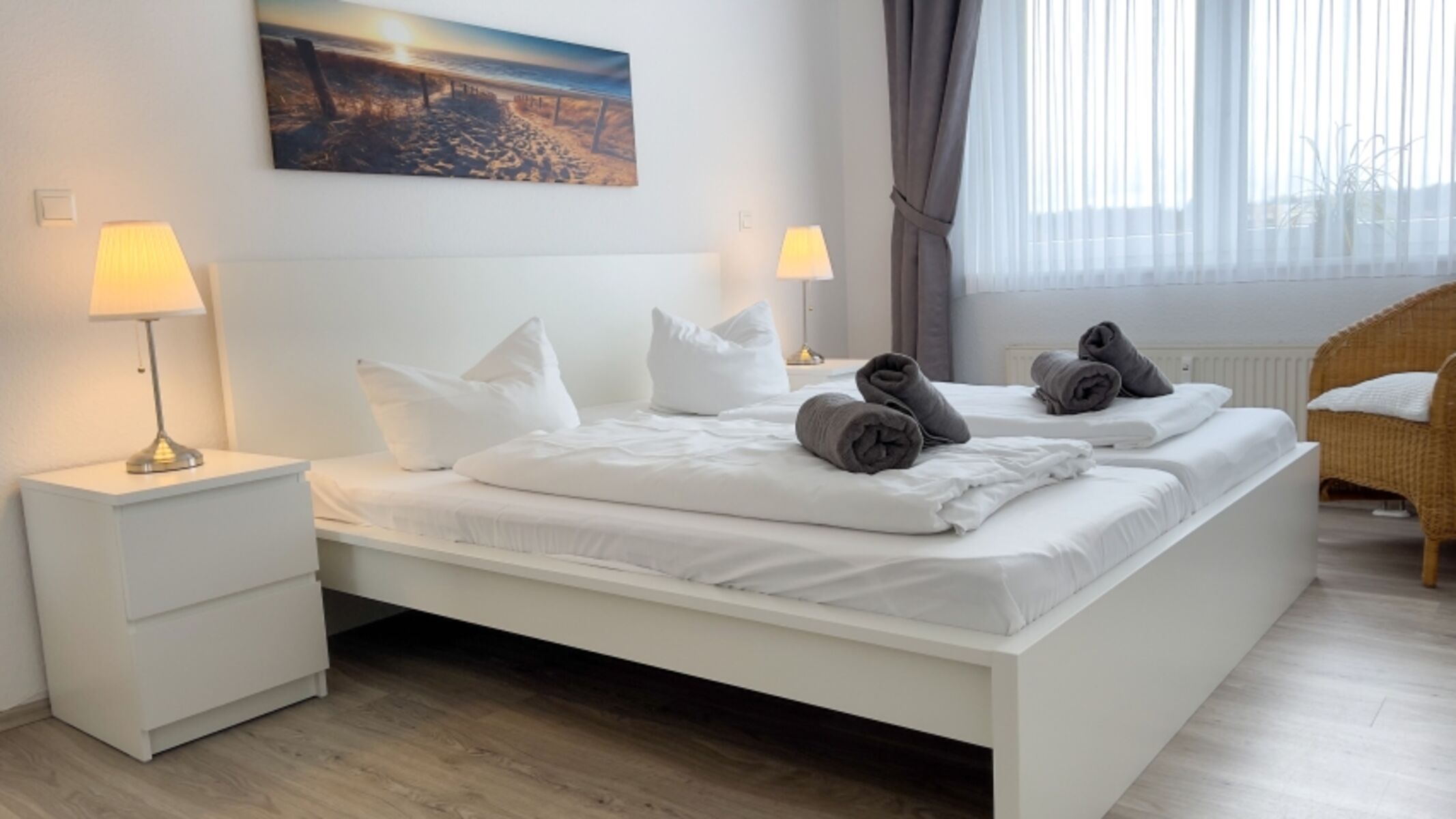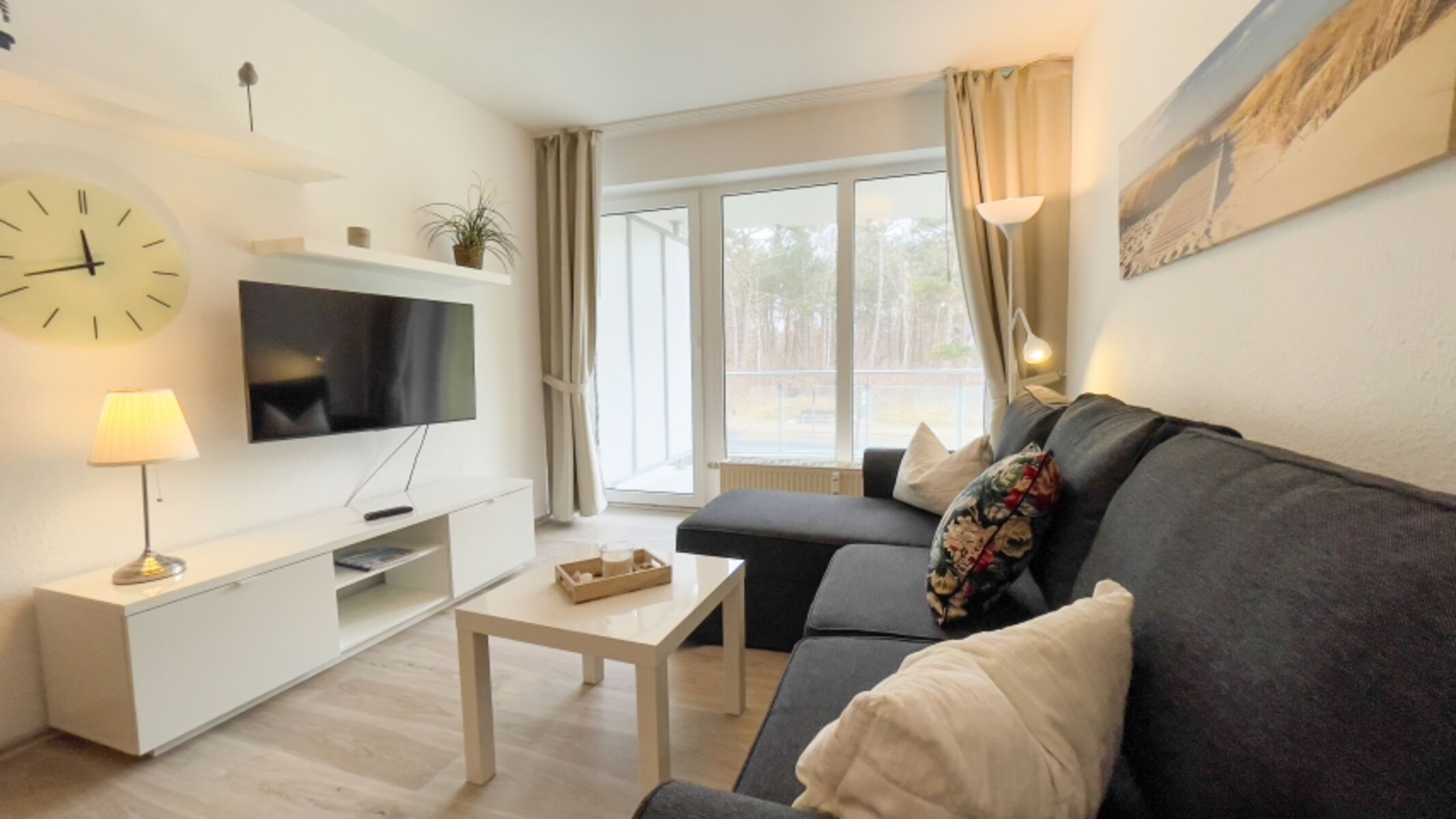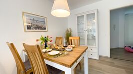 Hell und freundlich eingerichtete 3-Raum Ferienwohnung für bis zu 6 Personen mit zwei Balkonen.