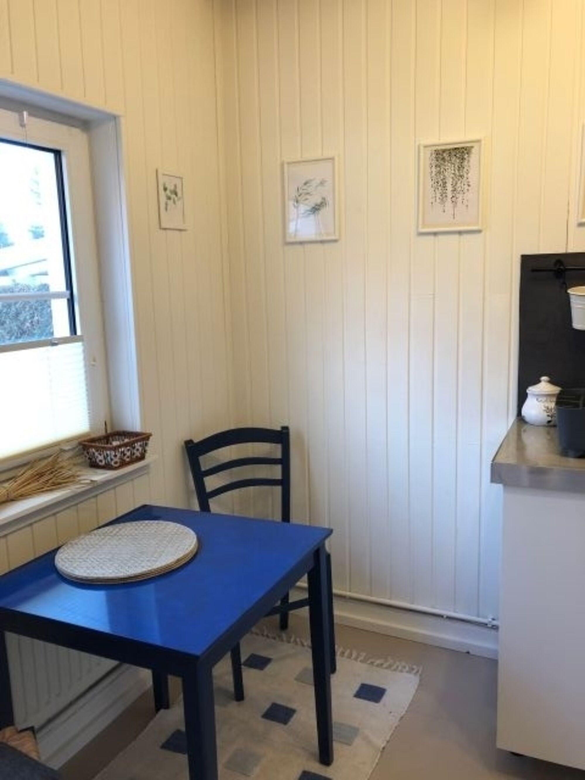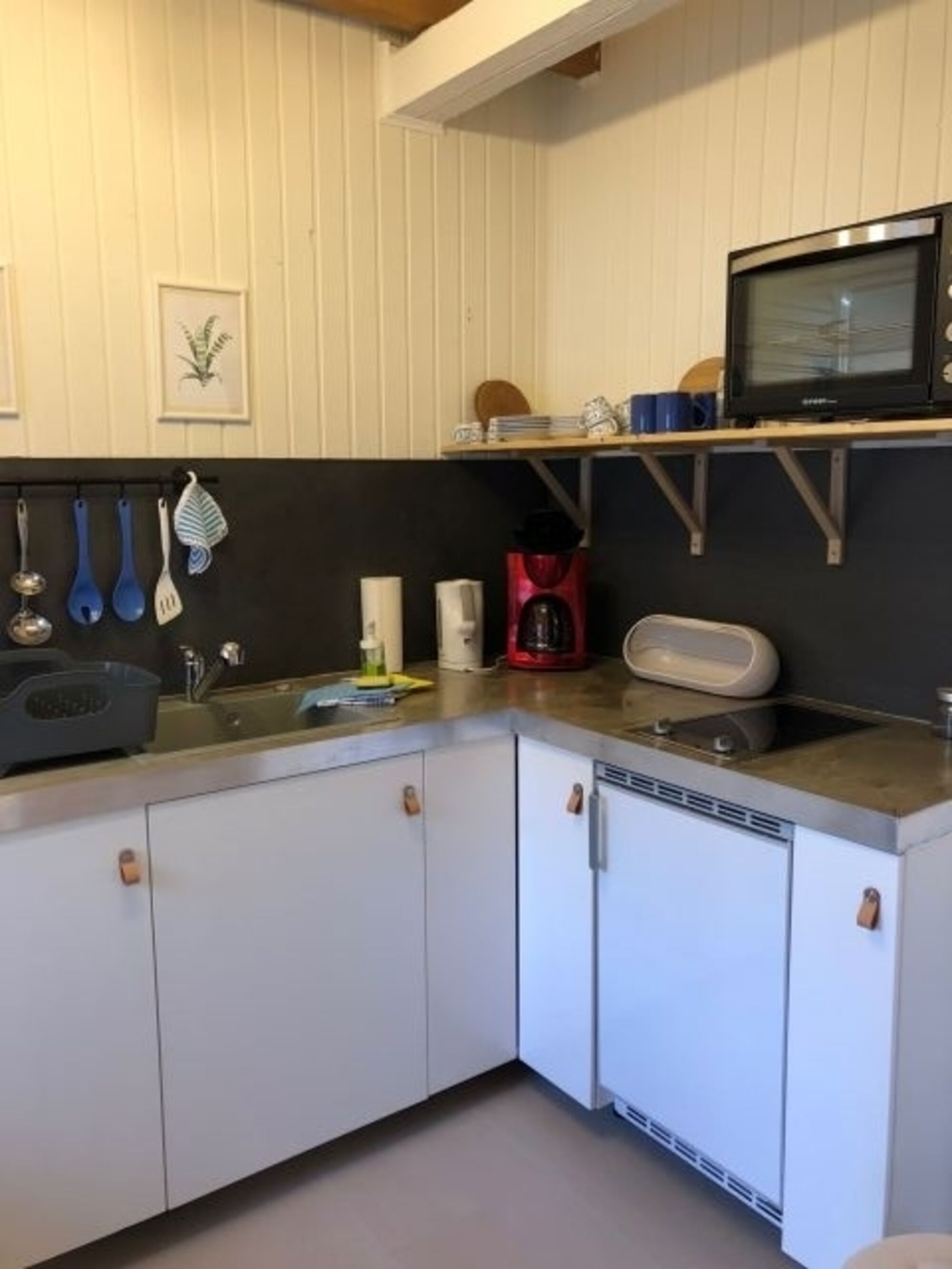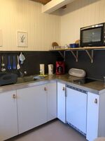 2-Platten Herd, Cerankochfeld, Kühlschrank mit Gefrierfach, Korkenzieher / Flaschenöffner, Geschirrhandtücher, Mülltüten, Essplatz in der Küche