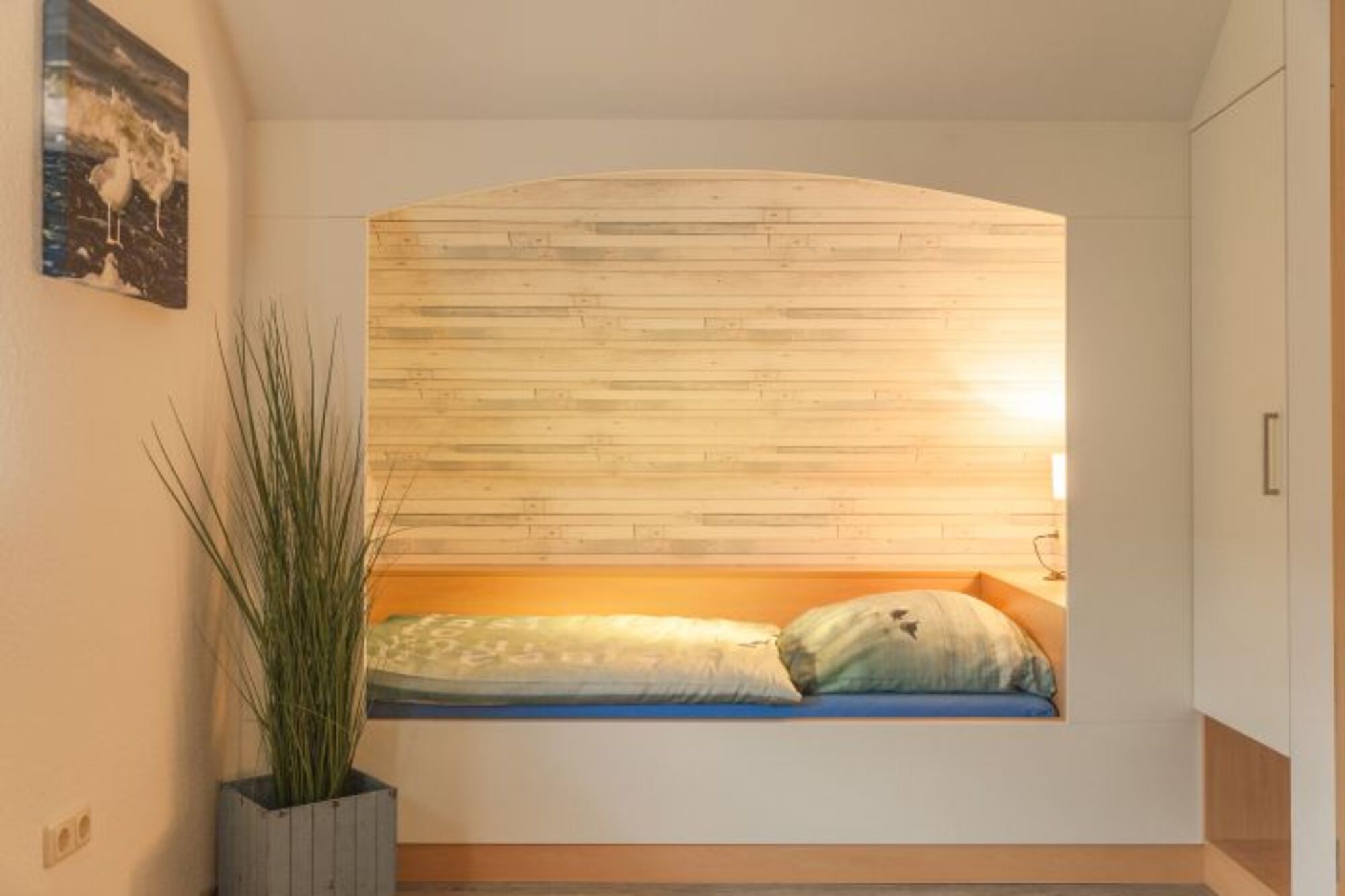 Einzelbett, Leselampe am Bett