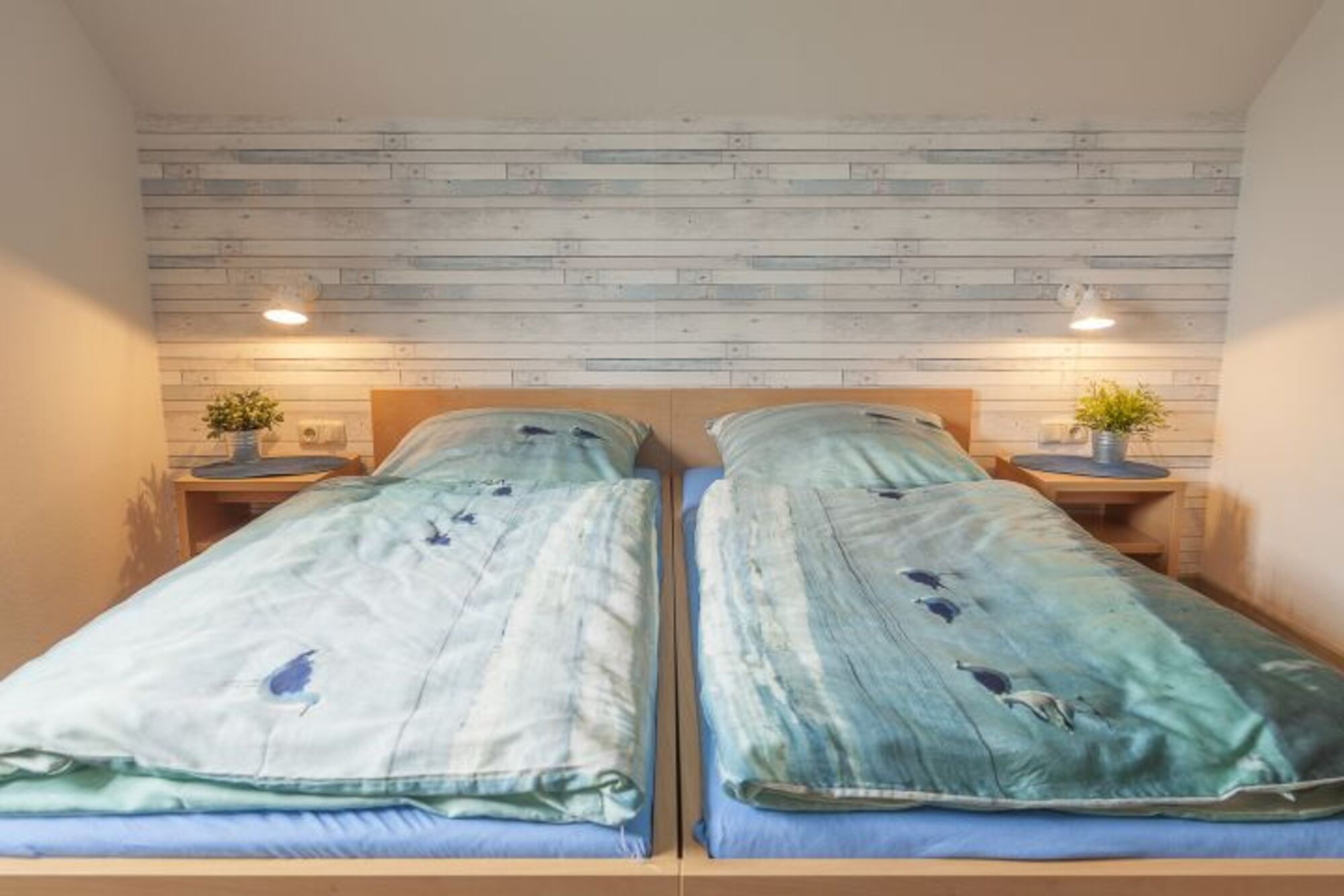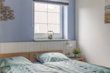 Im OG befinden sich ein Schlafzimmer mit einem Doppelbett und ein Schlafzimmer mit zwei Einzelbetten sowie ein weiteres Duschbad.