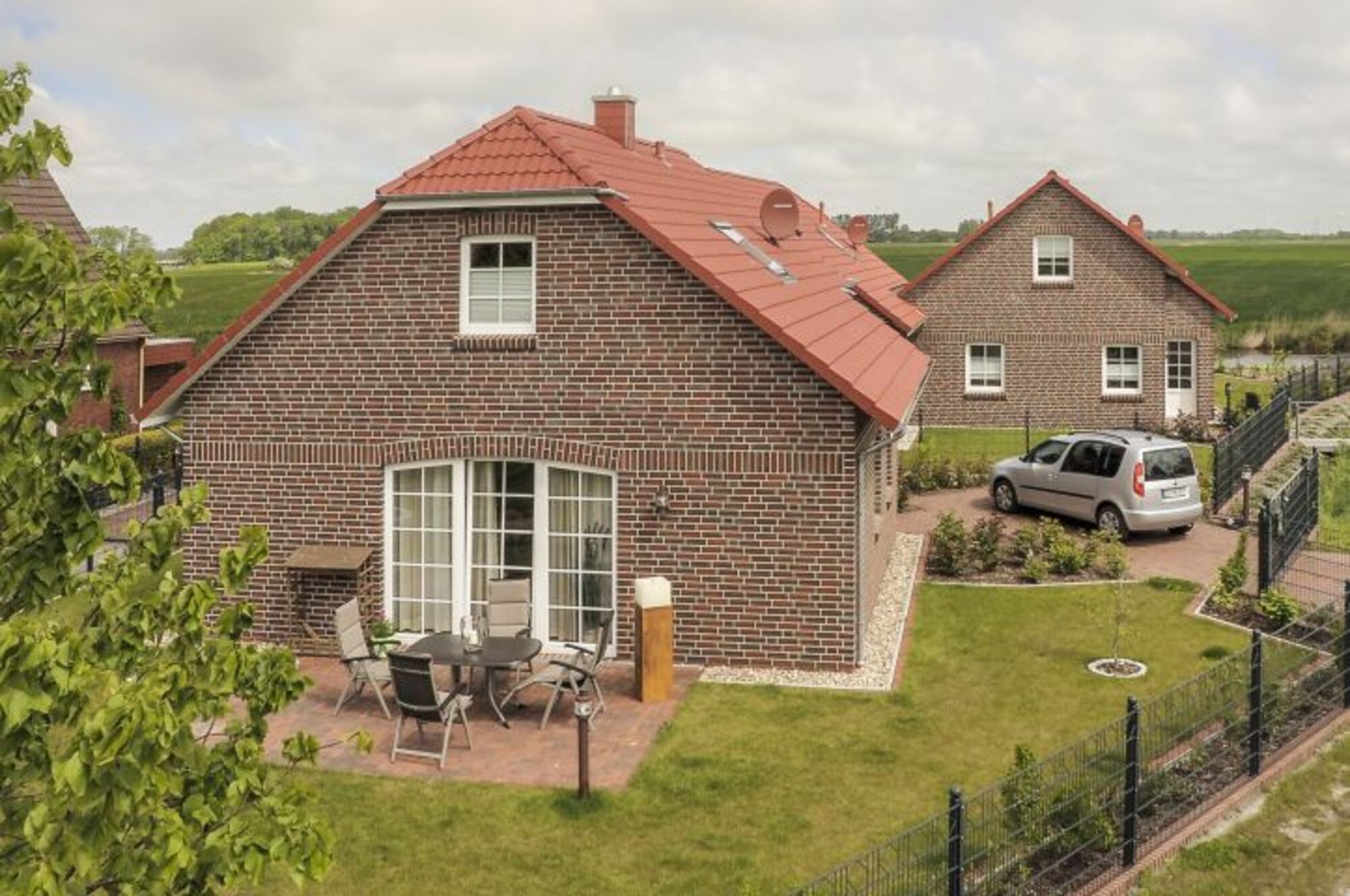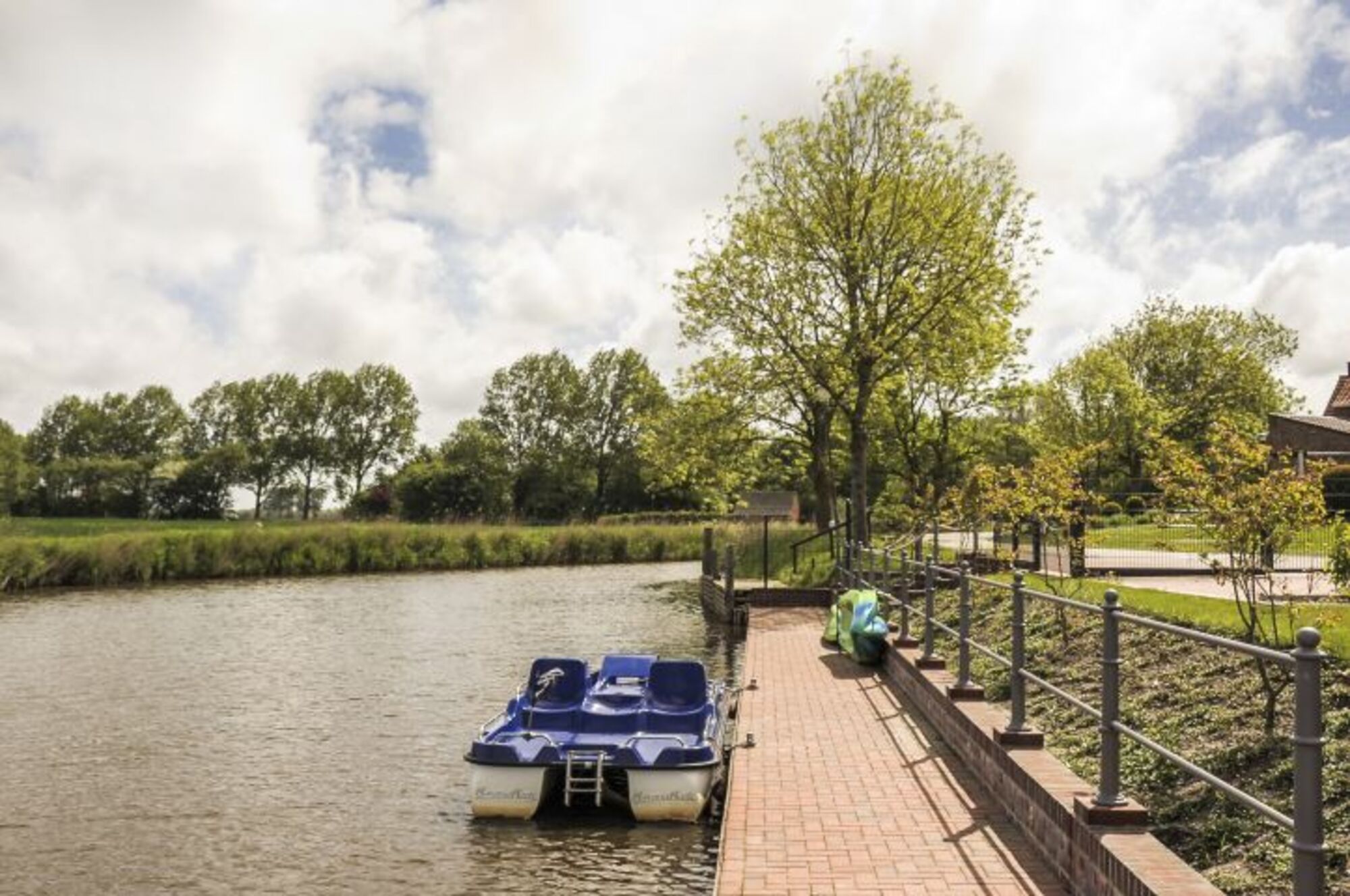 Das Haus ist komplett umzäunt (ca. 1,40m) und somit für Ferien mit dem Hund geeignet. Im großzügigen Garten befindet sich ein hübscher Springbrunnen. Auch ein eigener Stegbereich, welcher nur wenige Meter entfernt ist, gehört zum Haus.