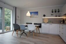 Der große Wohn- und Essbereich ist stilvoll eingerichtet und verfügt über eine hochwertige Einbauküche mit allem was man sich wünschen kann. Neben einer Kaffeemaschine finden Sie hier auch einen Geschirrspüler, eine Espressomaschine, einen Backofen, Toaster usw... Eine ausziehbare Schlafcouch mit 160 x 200 cm Liegefläche rundet den Aufenthalt für bis zu 6 Personen optimal ab.