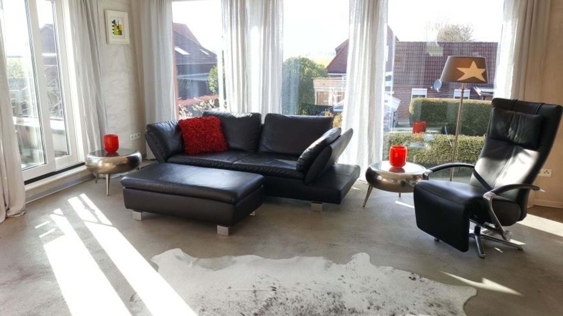 Villa Garten, Wolke 7 im Penthouse, diese Bezeichnung ist Programm. Die Villa Garten mit zwei Wohnungen Separate Eingänge) liegt ruhig inmitten eines schön angelegten Stauden- und Gehölzgartens. Im Penthouse (1. OG) befindet sich die Wolke 7 mit tollen Ausblicken in die Umgebung und auf den Deich. Die Wohnung ist absolut einzigartig: Asymmetrisch, im Loftlook, aber supergemütlich, lichtdurchflutet, sehr gut ausgestattet, hochwertige, geschmackvolle Möbel, ein großzügiges Bad im Hammamlook . Die Dachterrasse ist, teilweise begrünt, 70 qm groß und ausgestattet mit gemütlichen Loungemöbeln. In den hochwertigen Betten schlafen Sie wie auf Wolke 7. Alles in allem ein wunderbarer Ort zur Erholung.