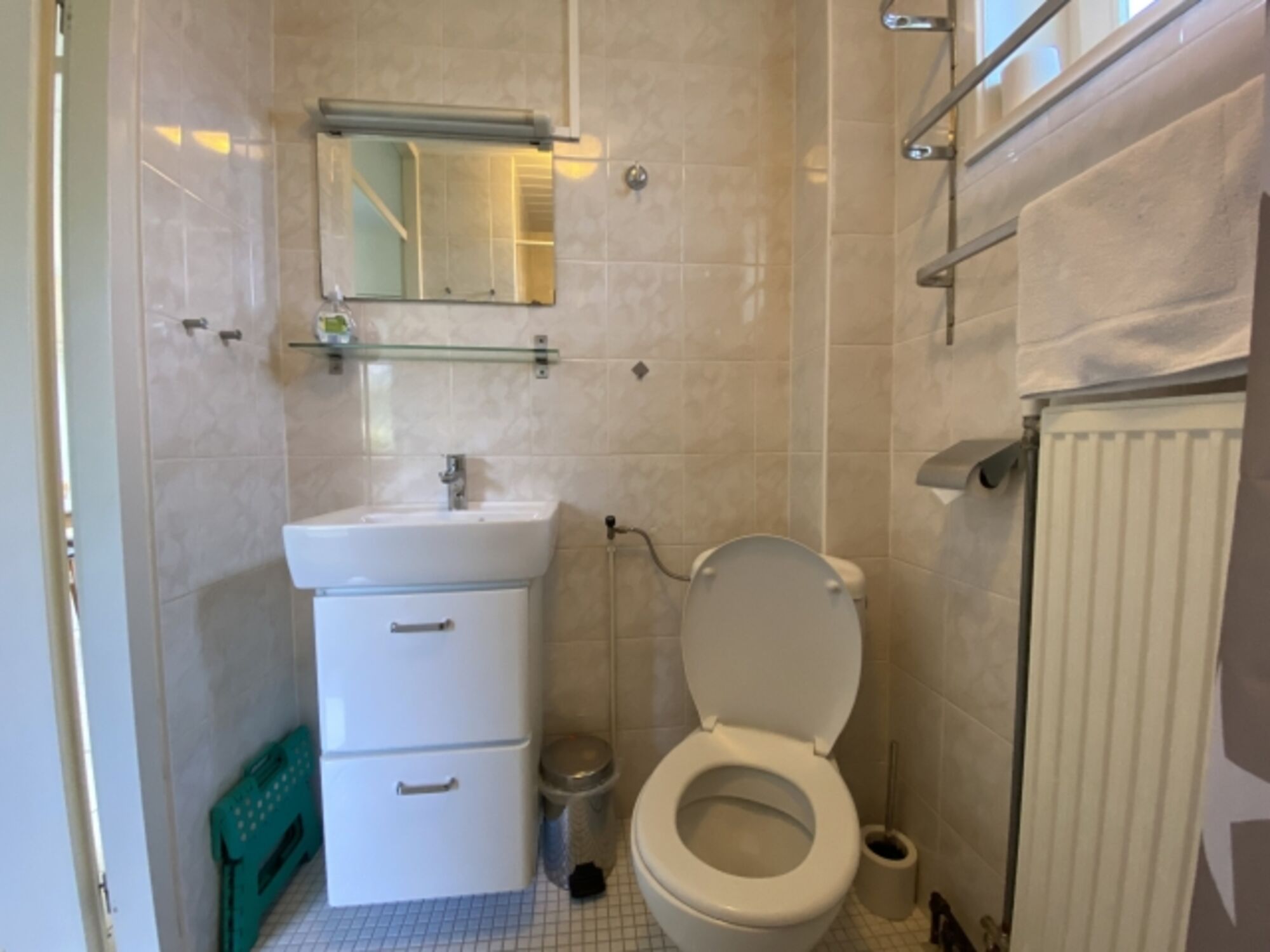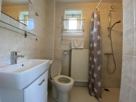 Kühlschrank. Dusche und WC