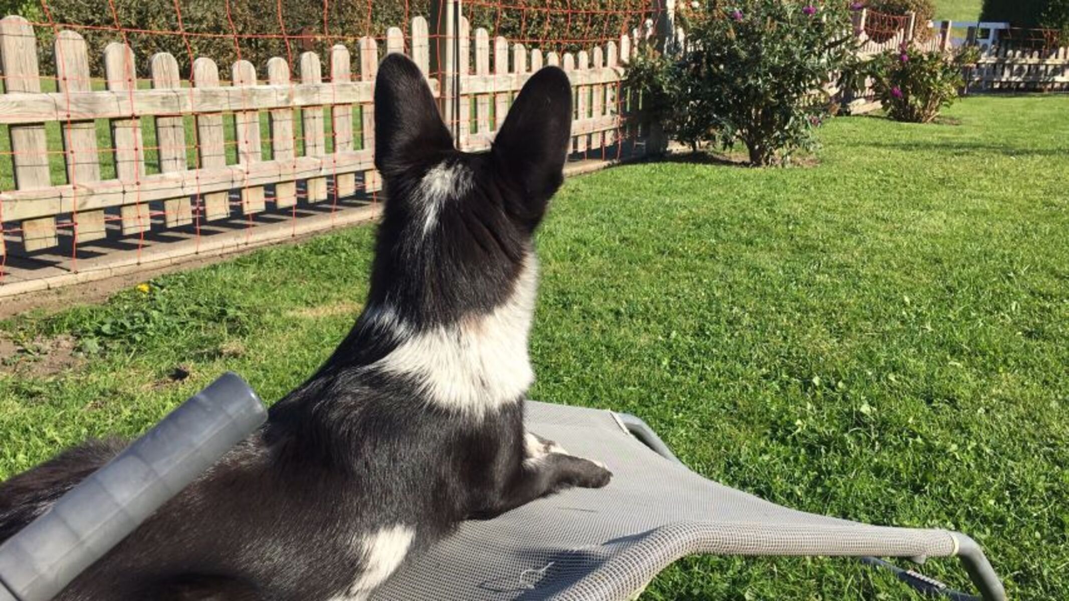 Liegewiese, Gartenmöbel, Kohlegrill, Windschutz