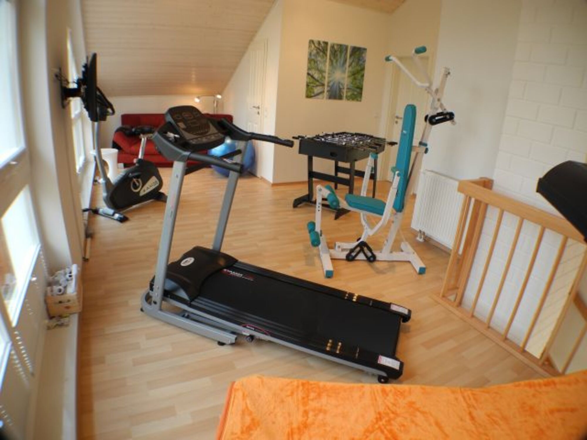 Hier finden Sie auch ein Laufband, ein Fahrrad-Heimtrainer, eine Multikraft-Station, ein Solarium, eine Wii-Spielekonsole, mit Sports Resort, sowie einen Tischkicker.