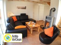 Das Haus ist im Wohnzimmer mit einem Luftreiniger ausgestattet. Laut Hersteller ist es damit möglich, 99,9 % der Viren und Aerosole aus der Luft zu entfernen.