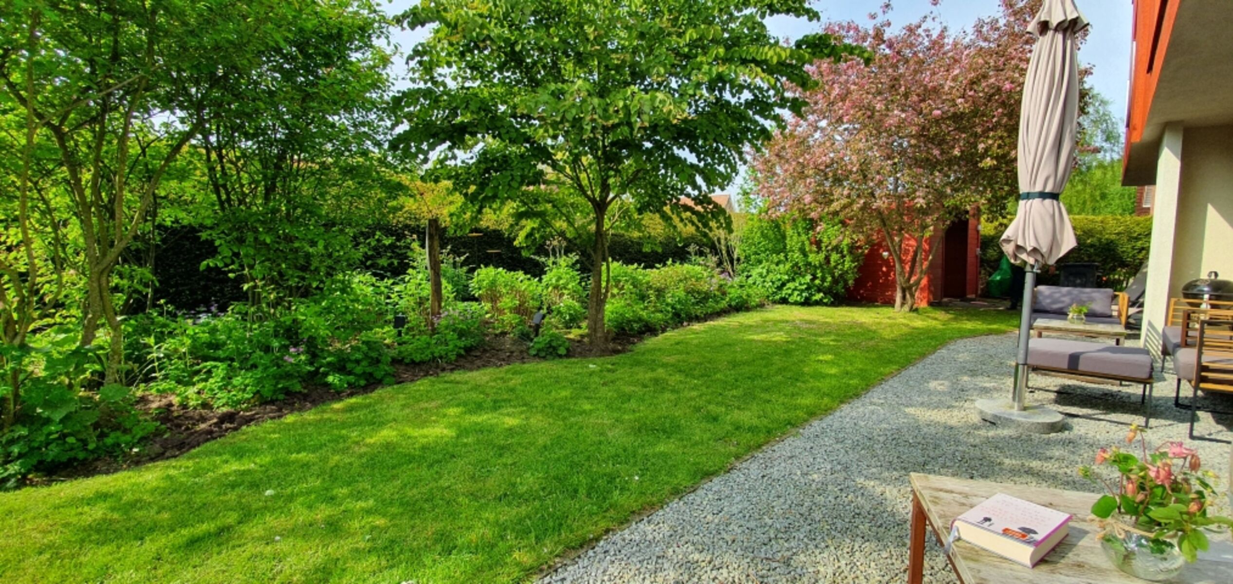 Die Villa Garten mit zwei Wohnungen liegt ruhig inmitten eines romantischen Stauden- und Gehölzgartens. Bedingt durch die großzügigen Fensterflächen zur Süd- und Westseite öffnet sich die EG- Wohnung zum harmonisch angelegten Garten.