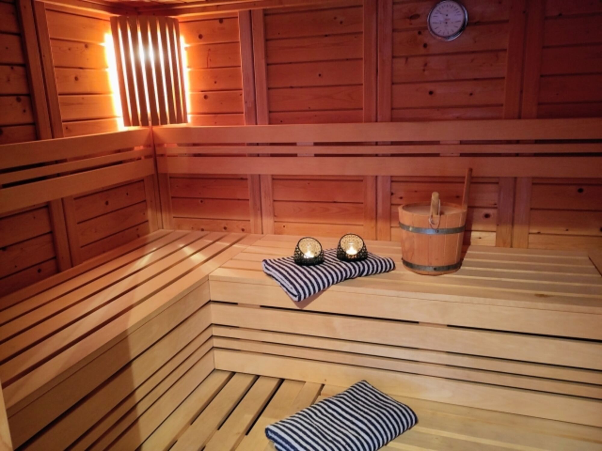 Sauna einmalig 25,00 EUR inkl. 2 Saunatüchern, Flat 60,00 EUR/Woche,Flat für 2 Wochen 100,00 EUR.