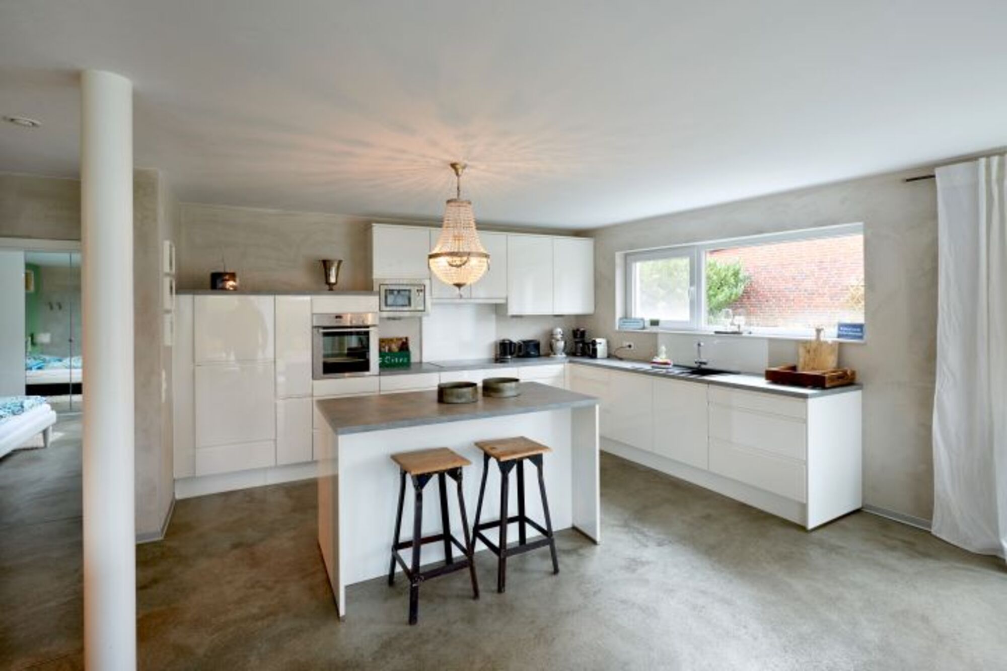 Eine grüne Insel - und genau so haben wir diese wunderschöne Wohnung benannt - die Grüne Insel. Die Wohnung ist etwas ganz Besonderes: asymmetrisch vom Schnitt her, natürliche Materialien, ruhige Farben, hochwertige Ausstattung. Der ökologische Lehmputz und eine Anlage zur automischen Be- und Entlüftung sorgen für ein harmonisches Raumklima, die Fußbodenheizung und der Kaminofen für eine behagliche Atmosphäre. Viel Platz, drinnen und draußen, sorgen für ein Gefühl von Weite und für genügend Rückzugsmöglichkeiten, sodass es auch mit 4 Personen nicht zu eng wird. Große Tafeln, Loungemöbel, eine Sofalandschaft, Liegestühle - eben pure Gemütlichkeit. Die Wohnung hat zwei Schlafzimmer und jedes hat ein eigenes Bad im Hammamlook. Zu jeder Jahreszeit sorgt der Aufenthalt in dieser einzigartigen Wohnung für einen garantierten Urlaubsgenuss. Die Gartensauna (zur Alleinnutzung), gesunde Seeluft und viel Ruhe sorgen für Erholung. Wer gern kocht findet in dieser sehr gut ausgestatteten Küche alles was das Herz begehrt: eine Kitchen-Aid. schönes Geschirr und Besteck, Gläser für 12 Personen, etc..
