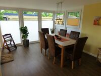 Auf der Terrasse hat man den ganzen Tag Sonne. Die Kinder unserer Gäste können sich auch auf dem großen Trampolin vergnügen. Hier kann man ohne Kinder die Seele baumeln lassen, mit Kindern im großen Garten spielen oder mit seinem Hund endlose Spaziergänge machen. Das Haus ist mit Laminat ausgelegt. Strom- und Wasserkosten werden nicht extra berechnet. Das Südwest-Grundstück liegt im Störtebeker Weg 18, straßenabgewandt.