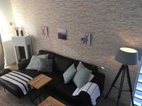 Wohnbereich mit Kamin, Ledersitzgarnitur, Esstisch für 6 Personen, XL-Flachbildschirm-TV (SAT-TV), DVD, Radio mit CD/MP3, kleine DVD-Sammlung, kleine Bibliothek, Google Chromecast, kostenloses WLAN.