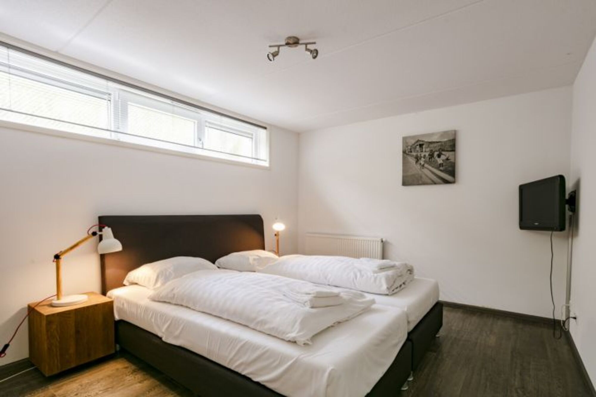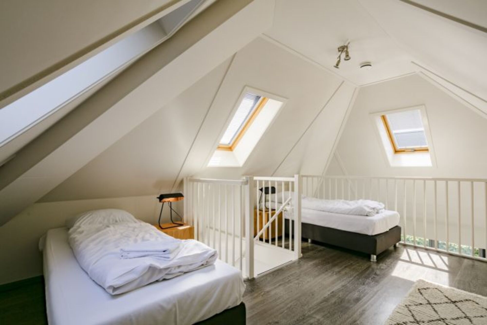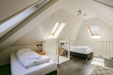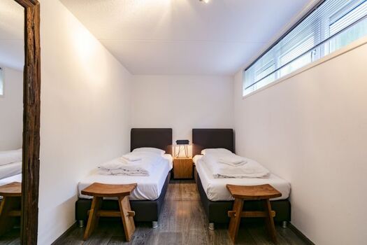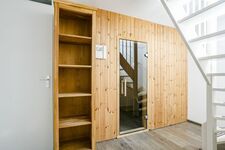 Zwei Schlafzimmer mit großem, komfortablen Badezimmer befinden sich im geräumigen Souterrain des Ferienhauses. Hier befindet sich auch eine finnische sauna für sechs personen. Das dritte Schlafzimmer mit zwei Einzelbetten befindet sich auf der Empore.