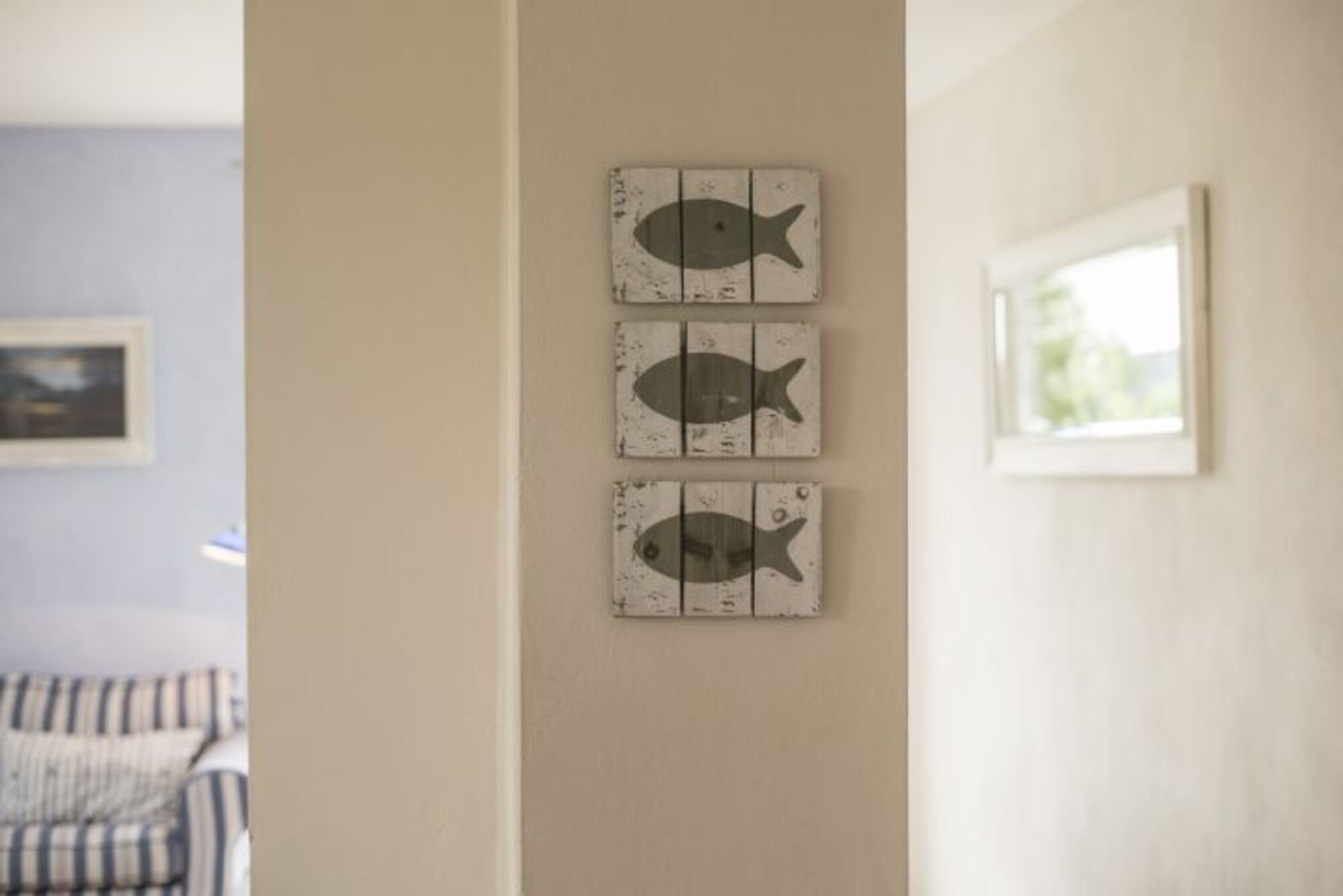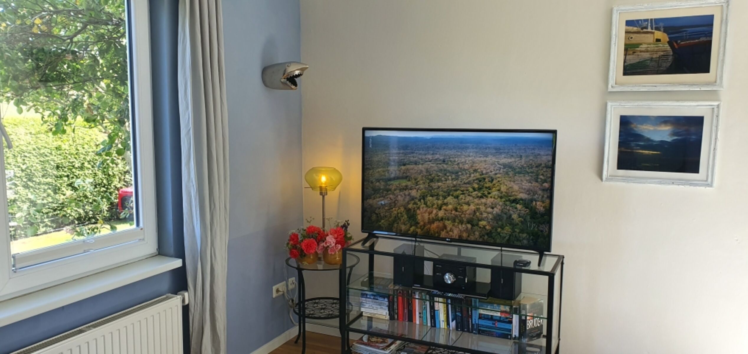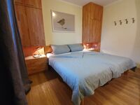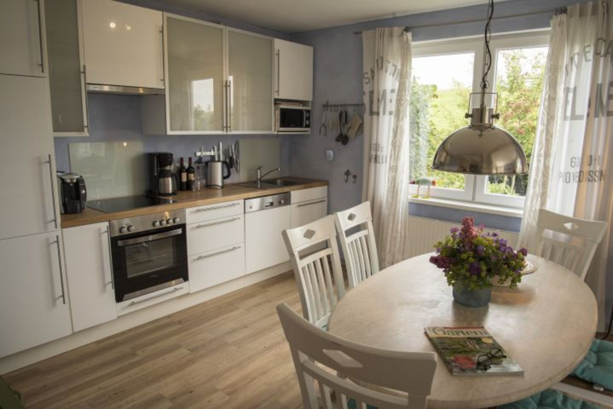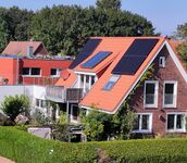 Die Wohnung im EG ist benannt nach den Elementen "Luft und Wasser" und entsprechend farblich gestaltet. Der ökologische Lehmputz sorgt für ein angenehmes Raumklima. In der wohnlichen Küche finden unsere Gäste ebenfalls eine große Tafel und ausreichend Geschirr, sodass auch ganze Familien im Haus bequem Urlaub machen können. Wir legen in all unserem Ferienwohnungen großen Wert auf eine sehr gute, gepflegte Ausstattung und so findet der Gast auch hier alles was er für einen erholsamen Urlaub braucht. Die Wohnung "Luft und Wasser" hat zwei Schlafzimmer mit hochwertigen, rückenfreundlichen Betten und ein Bad mit zwei Waschbecken. Waschmaschine und Trockner finden Sie in einem separaten Waschraum. Auf dem Grundstück befindet sich ein Schuppen, in dem Sie Ihre Fahrräder abstellen können.