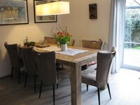 Der helle Wohn- Eßraum mit einer offenen Küche in der nichts fehlt. Die 4 großen DZ. haben alle Boxspringbetten ( 1 davon im EG mit TV ) 2 moderne Tageslicht-Bäder ( 1 im EG+ Gäste-WC. ) und eine finnischen Sauna. Der 43 Smart-TV - SAT & WLAN sorgt für Unterhaltung. Eine Doppelflügeltür führt auf die Terrasse und in den Garten.