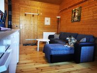 Unser Nichtraucher-Haus Merlin ist ein rustikales Holzhaus, gemütlich eingerichtet. Es verfügt über einen Schlafraum im Erdgeschoss (Doppelbett 140 x 200cm), eine Wohnküche mit Essbereich, ein Duschbad und eine Schlafgalerie für 3 Personen im Obergeschoß.