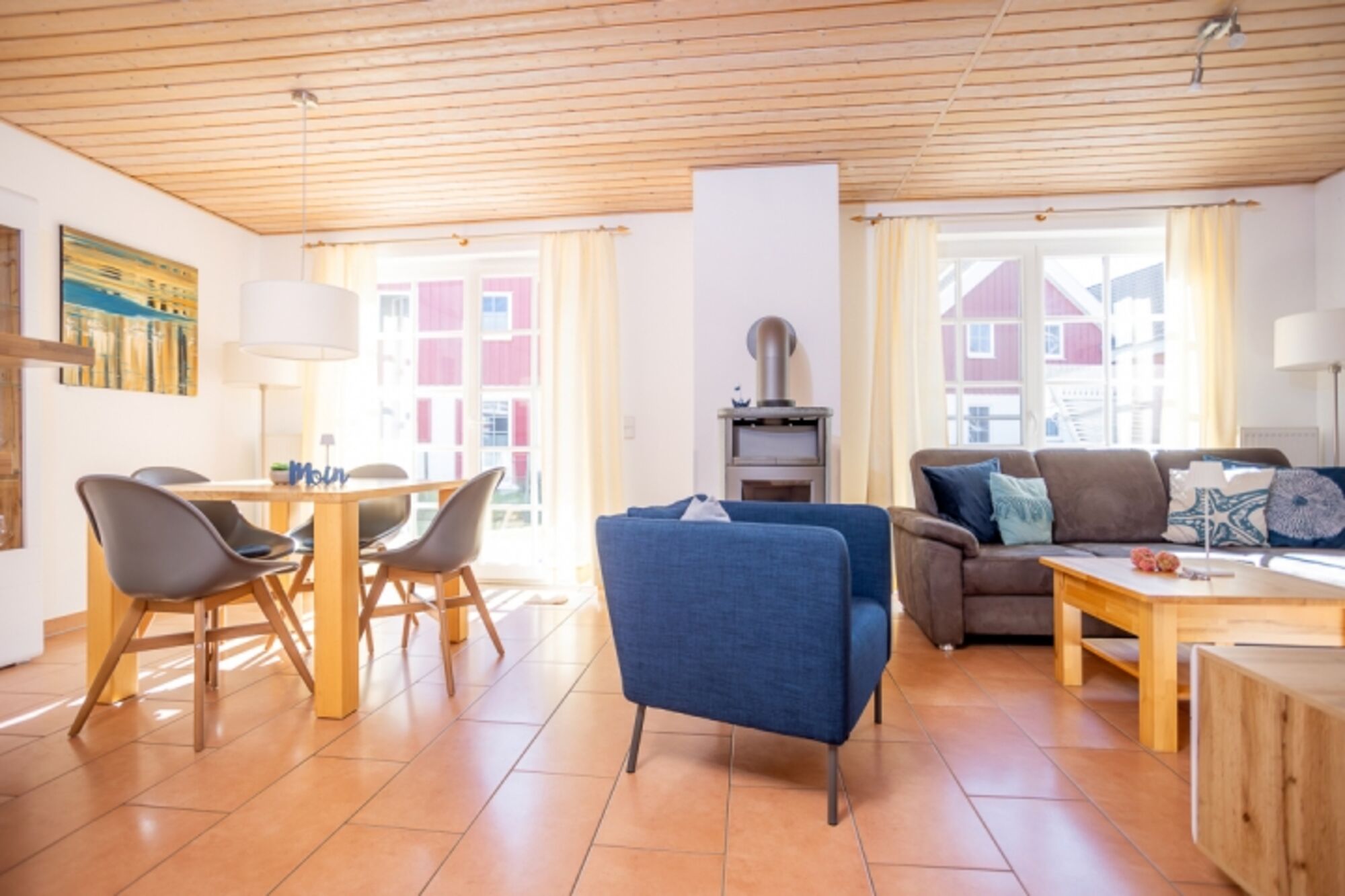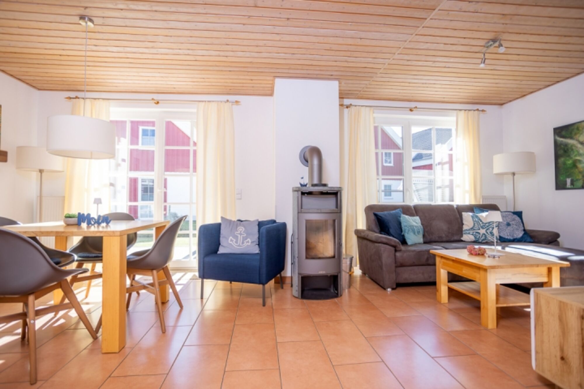Im Sommer auf der extragroßen, nach Süden ausgerichteten Terrasse frühstücken, im Winter einen langen Spaziergang über den Deich und dann relaxen im hauseigenen Whirlpool und den Abend dann vor dem knisternden Feuer des Kaminofens ausklingen lassen - das ist einfach schön.