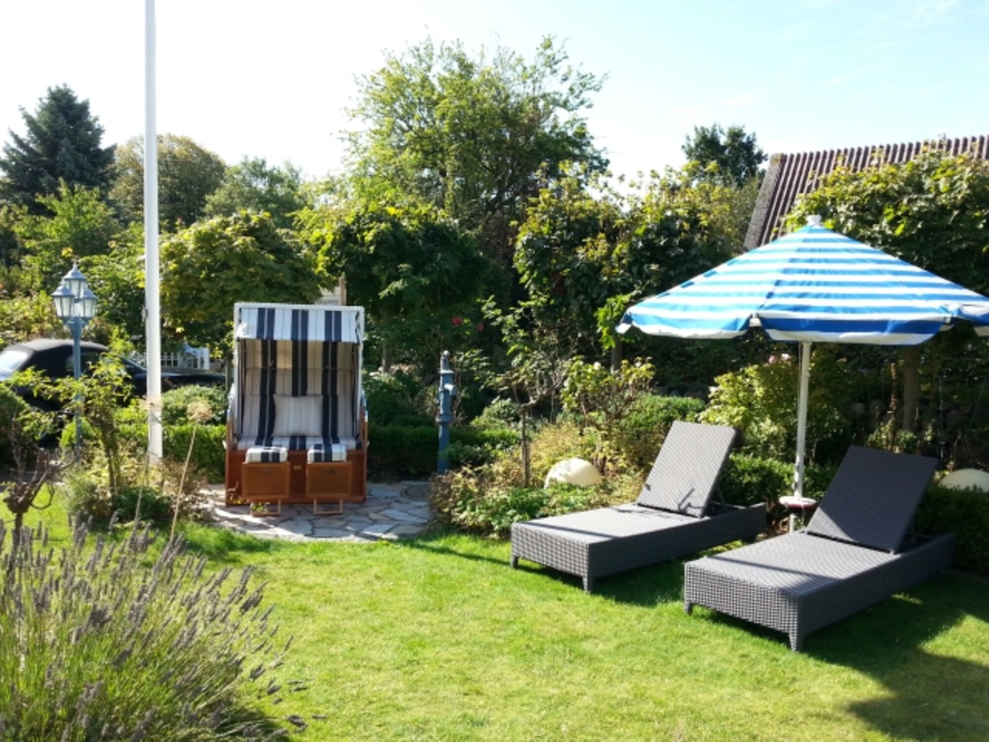 Das besondere Flair der VILLA BelAmi setzt sich in der aufwendigen Gartenanlage fort: hinter dem typischen Friesenwall laden raffinierte Buchsbaumkreationen, Rosenbeete sowie zwei Sonnenterrassen zum Verweilen ein. Sie werden zu jeder Tageszeit das perfekte Plätzchen finden. Auch in lauen Sommernächten sorgen die im Garten eingelassenen Moonlights für einzigartiges Ambiente.